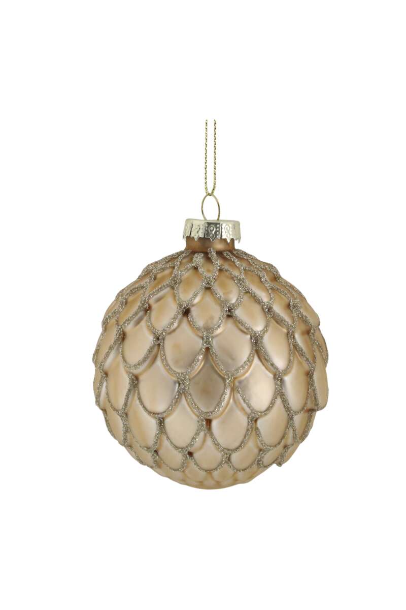 Artikelnummer: 54283Glaskugel mit Glitzer, ø8cm, Beige mit Gold