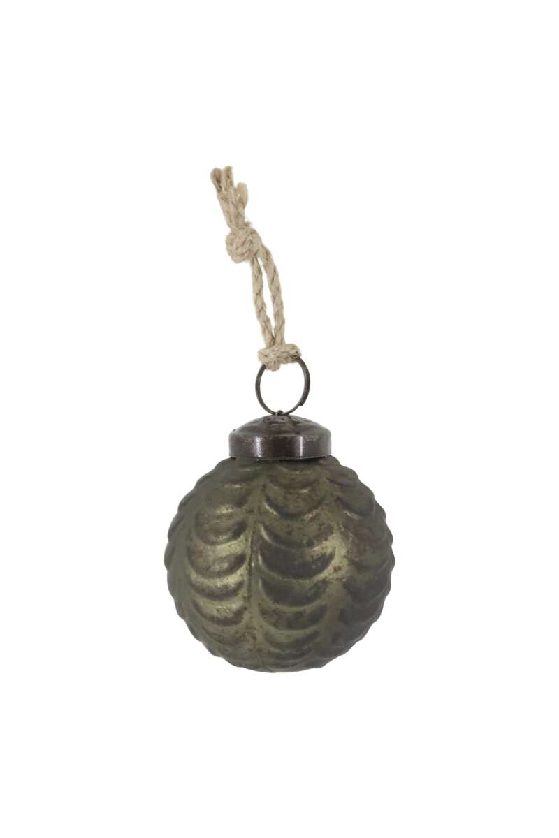 Artikelnummer: 54319Stilvolle grüne Weihnachtskugel aus Glas im Landhausstil, mit Vintage-Look.