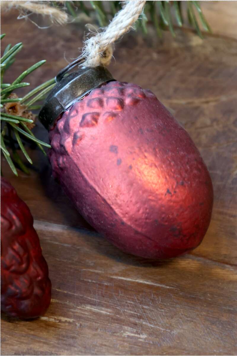 Stilvolle rote Weihnachtskugel aus Glas im Landhausstil, mit Vintage-Look. Größe ø3.5 cm.