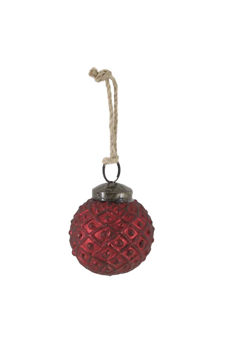 Stilvolle rote Weihnachtskugel aus Glas im Landhausstil, mit Vintage-Look.