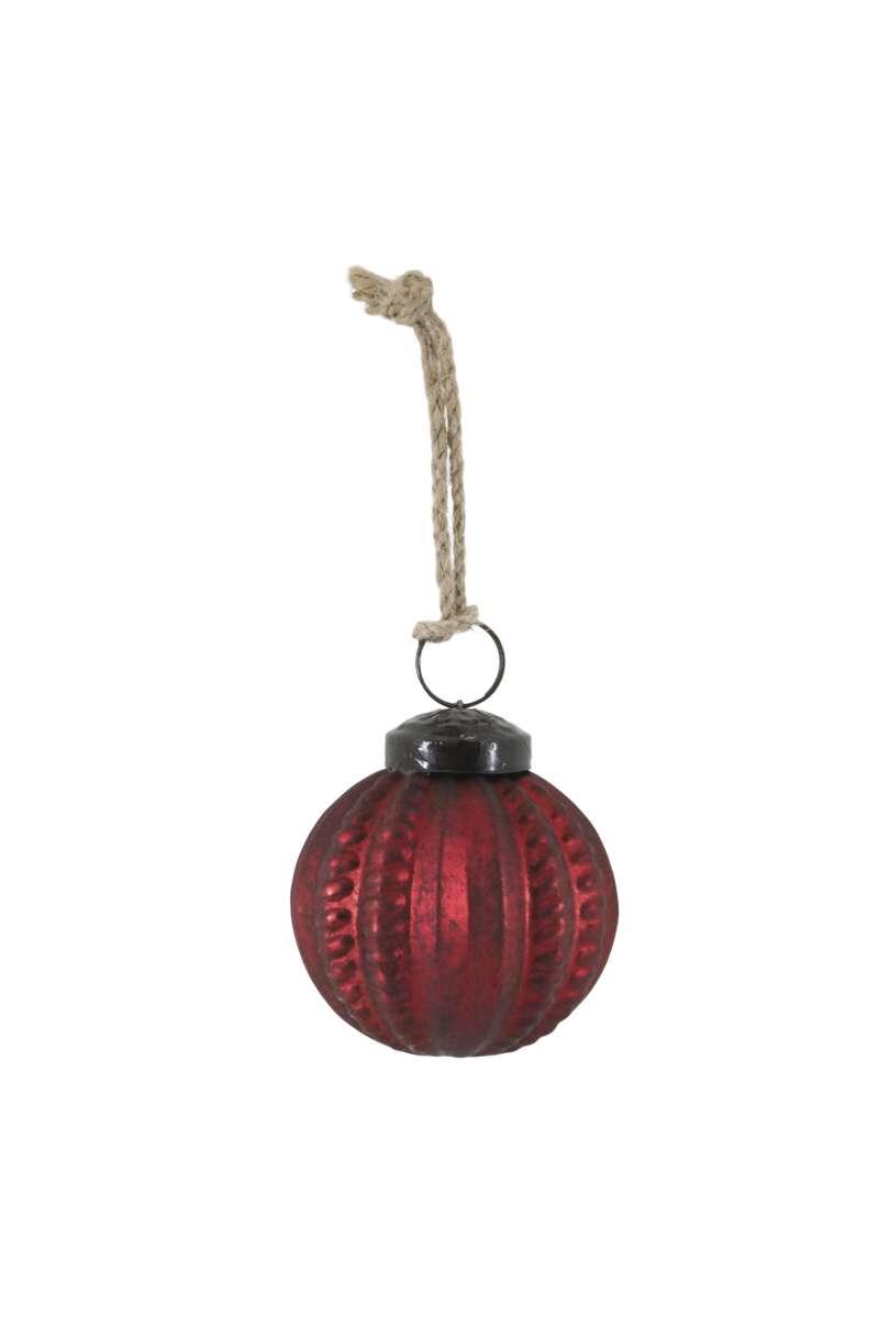 Artikelnummer: 54348Stilvolle rote Weihnachtskugel aus Glas im Landhausstil, mit Vintage-Look.