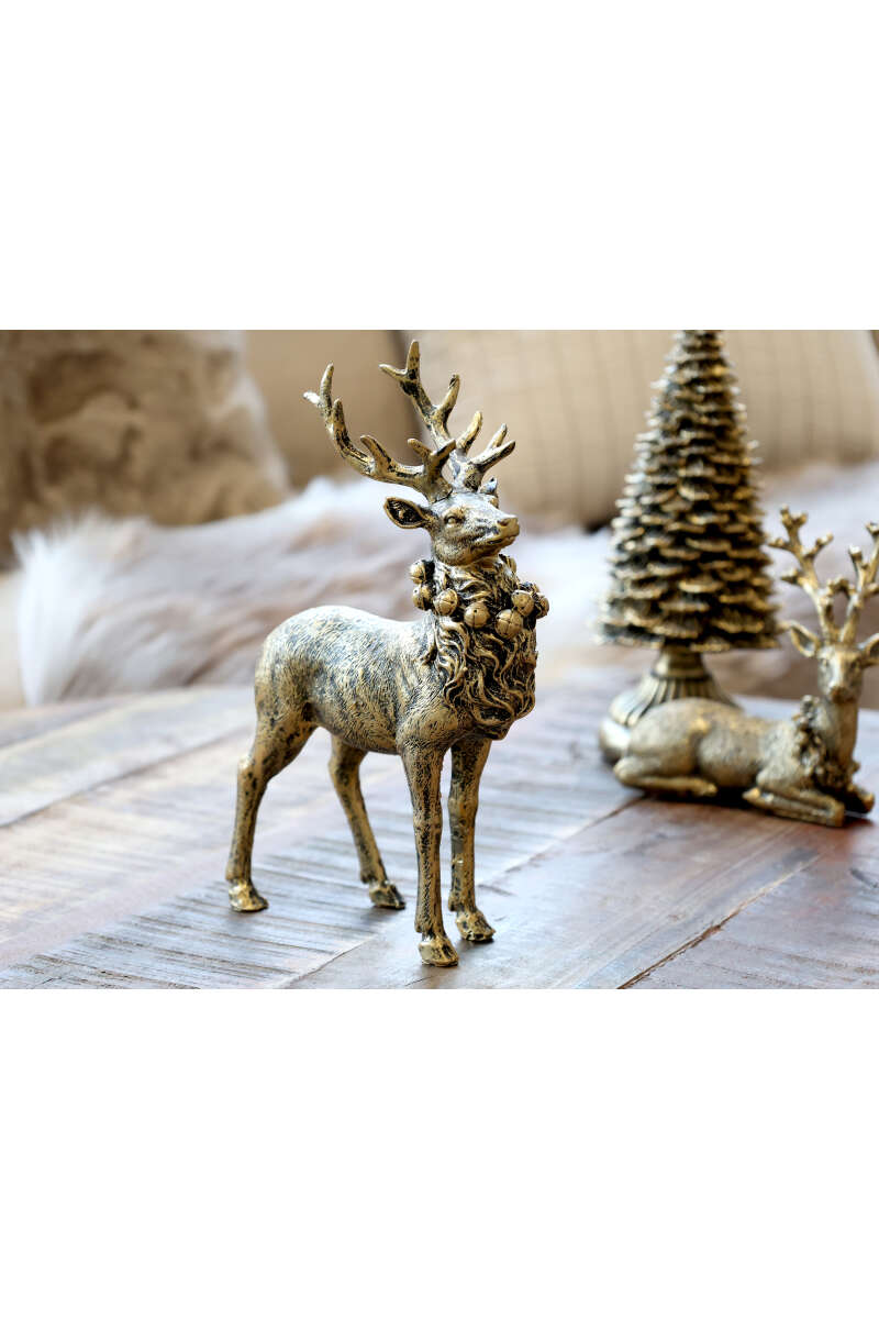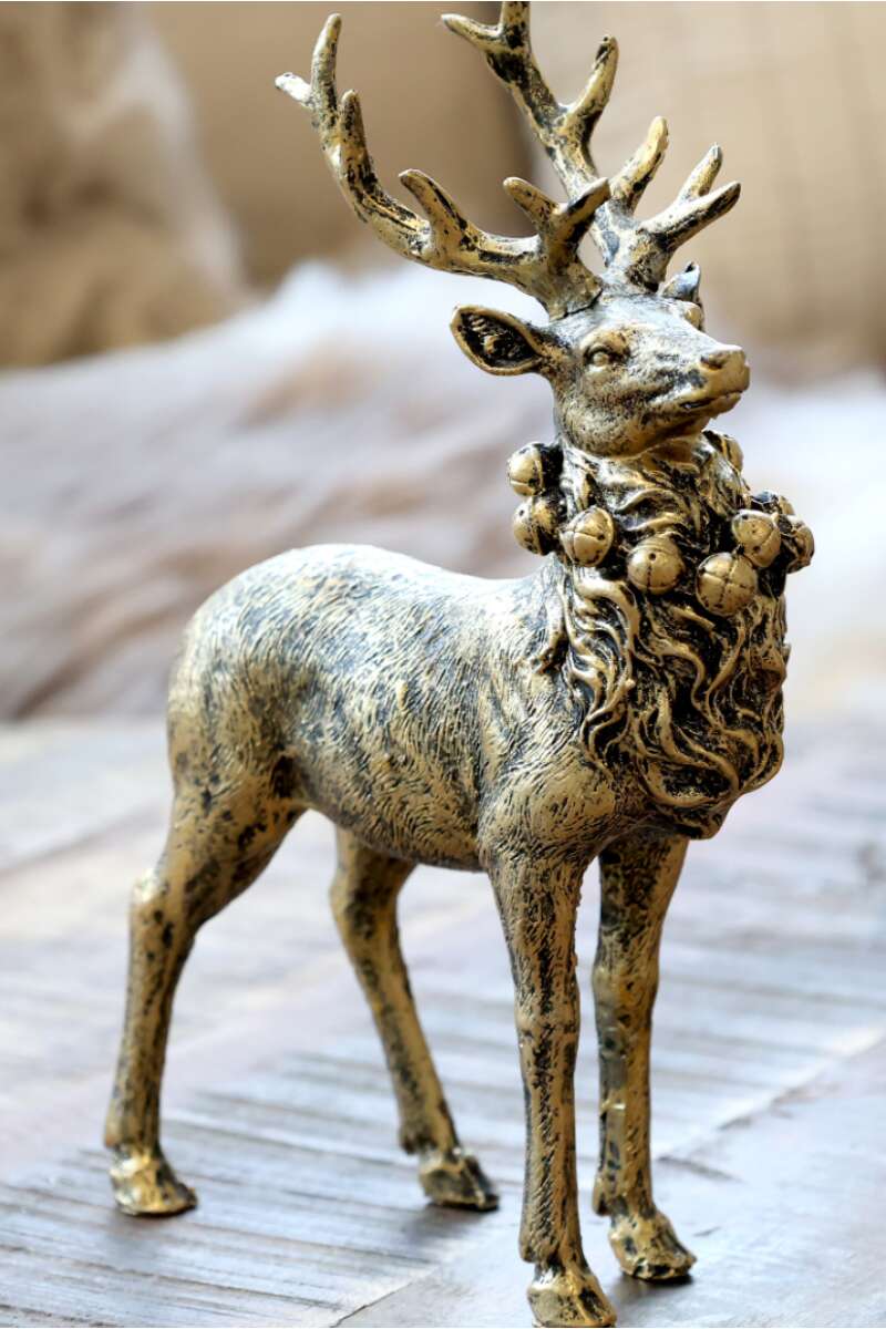 Artikelnummer: 53579Stehendes Rentier aus Polyresin,H23,5/L16,5/B5 cm antique messingfarben.