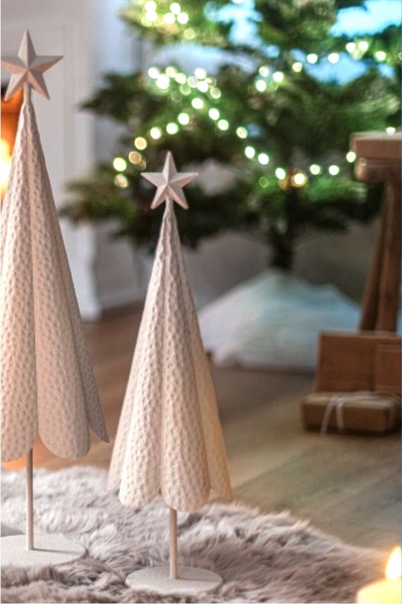 Artikelnummer: 54086Cremefarbene Metalltanne mit Stern, H56cm