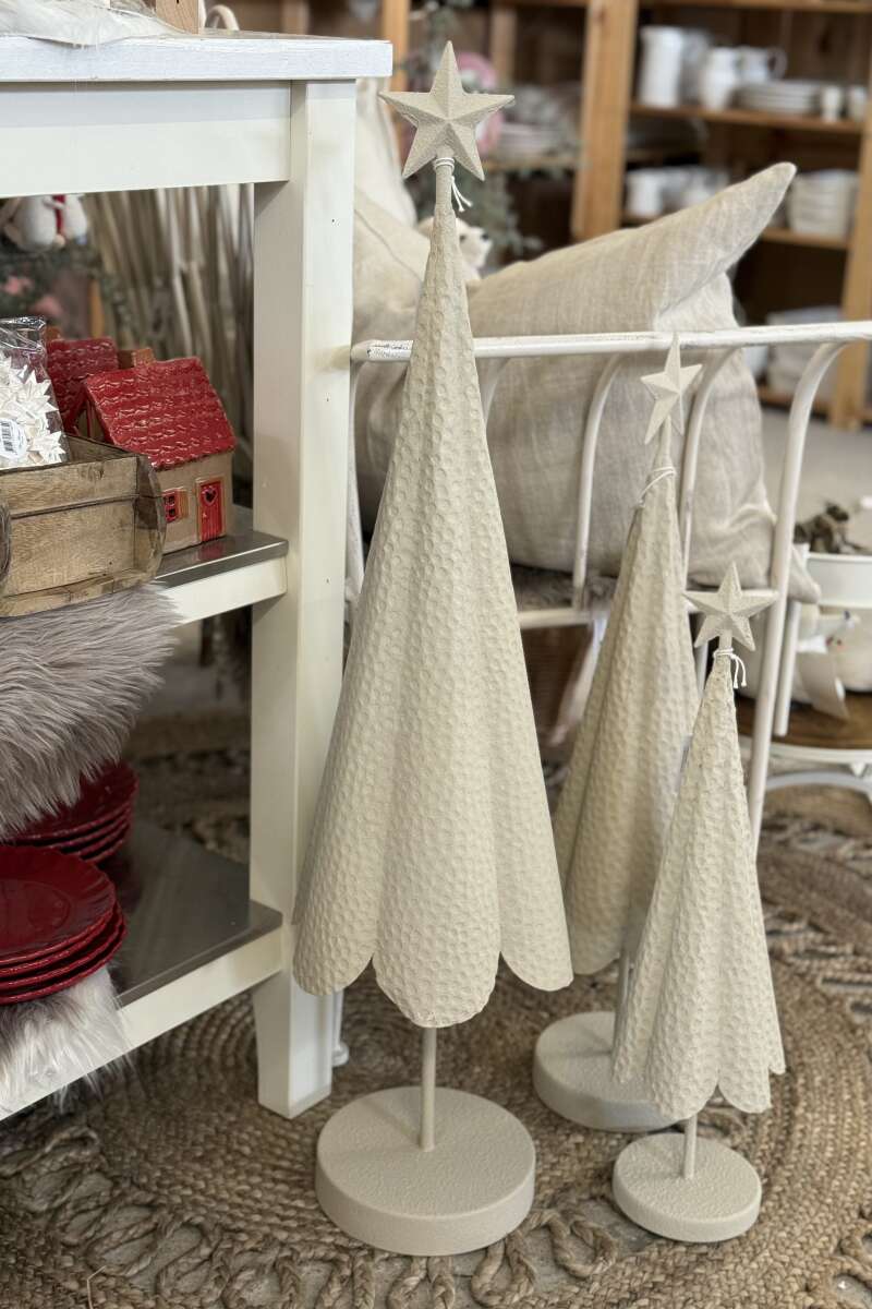 Cremefarbene Metalltanne mit Stern, H70cm.