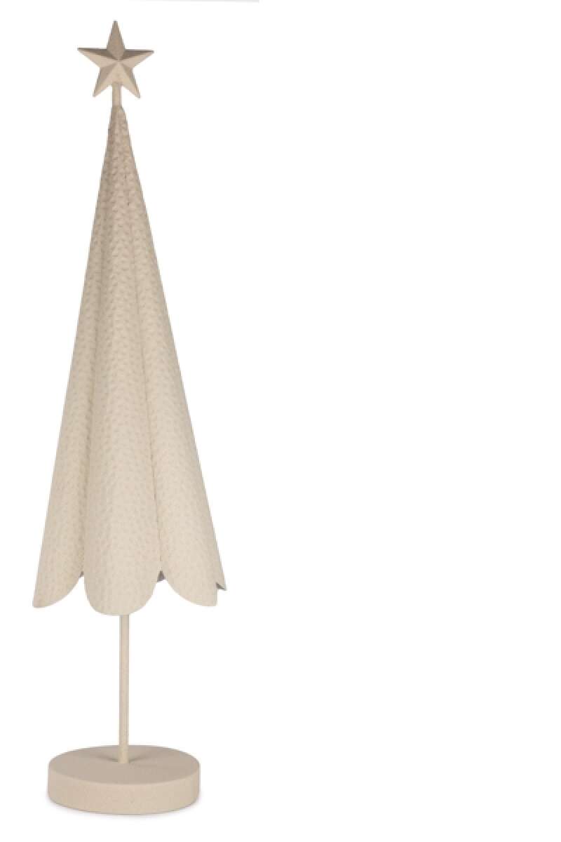 Cremefarbene Metalltanne mit Stern, H90cm