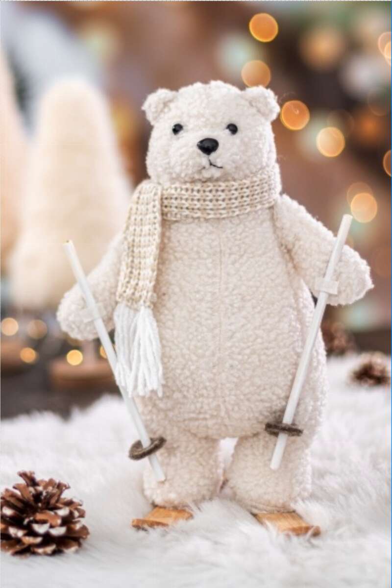 Artikelnummer: 54089Süsser Plüsch-Eisbär auf Skiern, H29cm, Handarbeit.