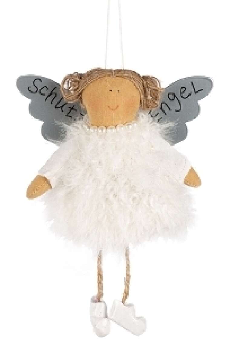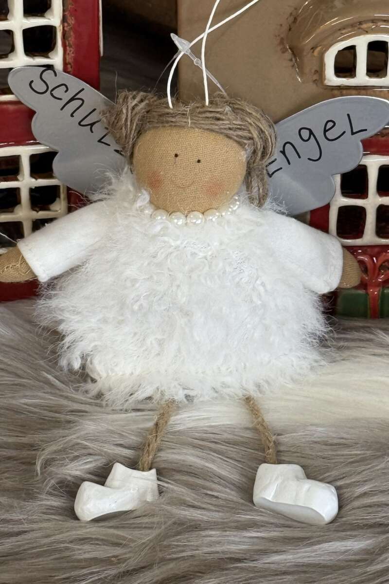 Putziger Winterengel im Flokati und Perlenkette, H17cm