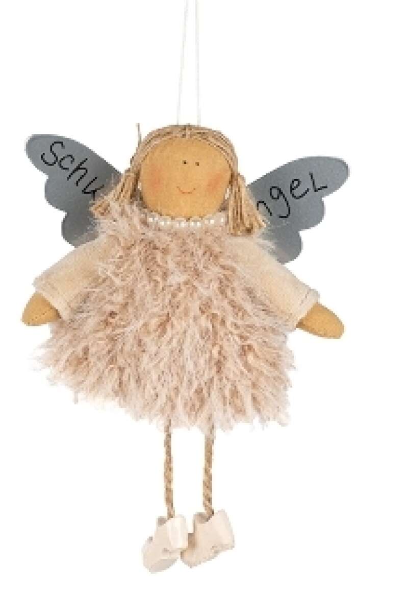 Putziger Winterengel im Flokati und Perlenkette, H17cm