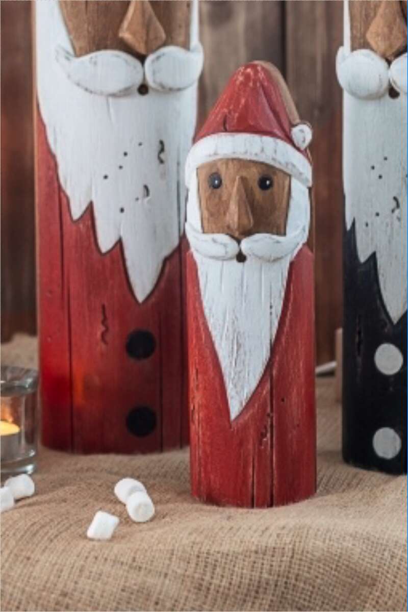 Dekorativer Weihnachtsmann aus einem Holzpfosten, H24cm, jeder ist ein Unikat, Handarbeit.