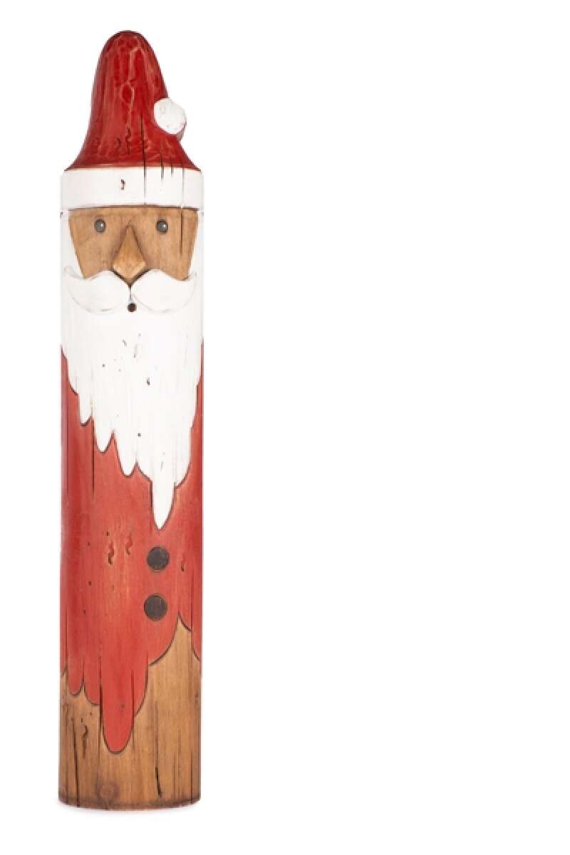 Artikelnummer: 54095Dekorativer Weihnachtsmann aus einem Holzpfosten, H60cm, jeder ist ein Unikat, Handarbeit.