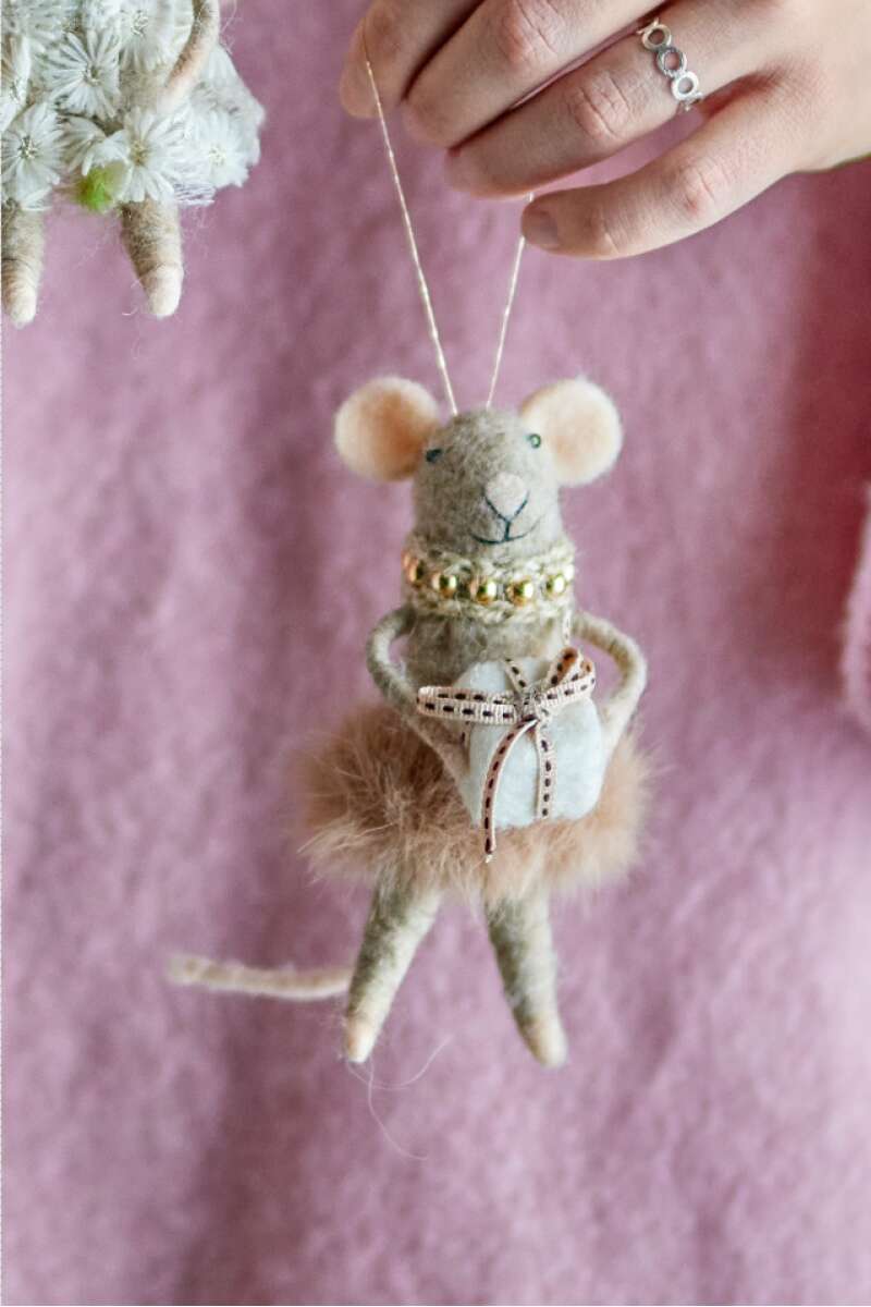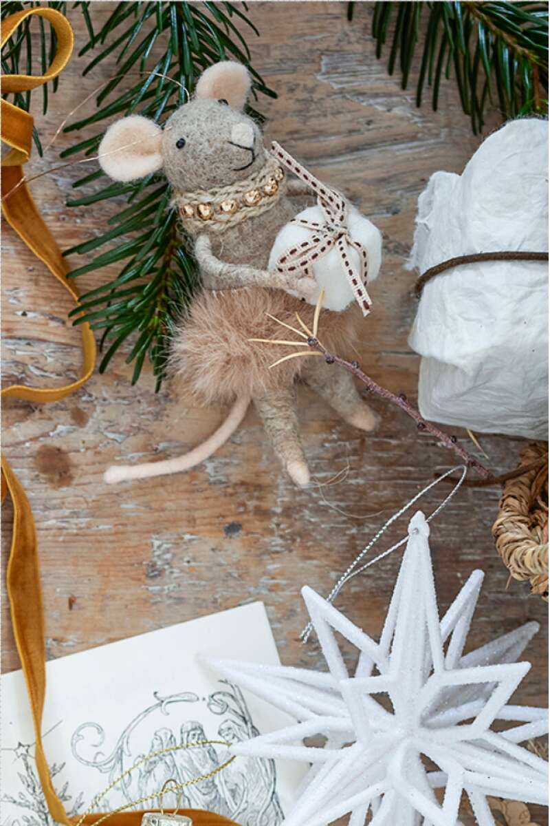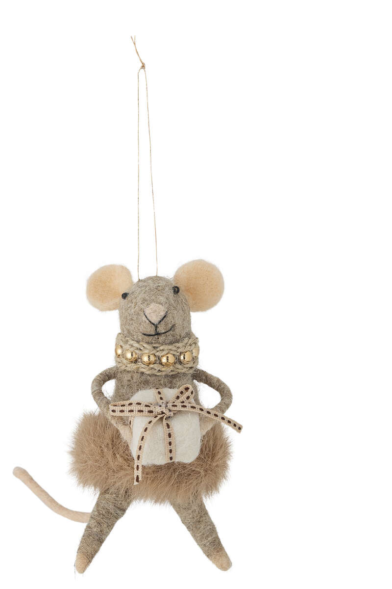 Artikelnummer: 54233Das Mäusemädchen von Bloomingville ist gefilzt aus Wolle und mit charmanten Details verziert. Ihr festliches Aussehen trägt zu einer spielerischen Stimmung in der Weihnachtsdekoration bei. Ausgestattet mit goldenen Aufhängeschnüren ist diese Maus perfekt zum Aufhängen am Weihnachtsbaum oder zum Einbeziehen in ein größeres dekoratives Arrangement, wo sie eine warmherzige Atmosphäre in jeden Raum bringen. L8xH13xW6 cm.
