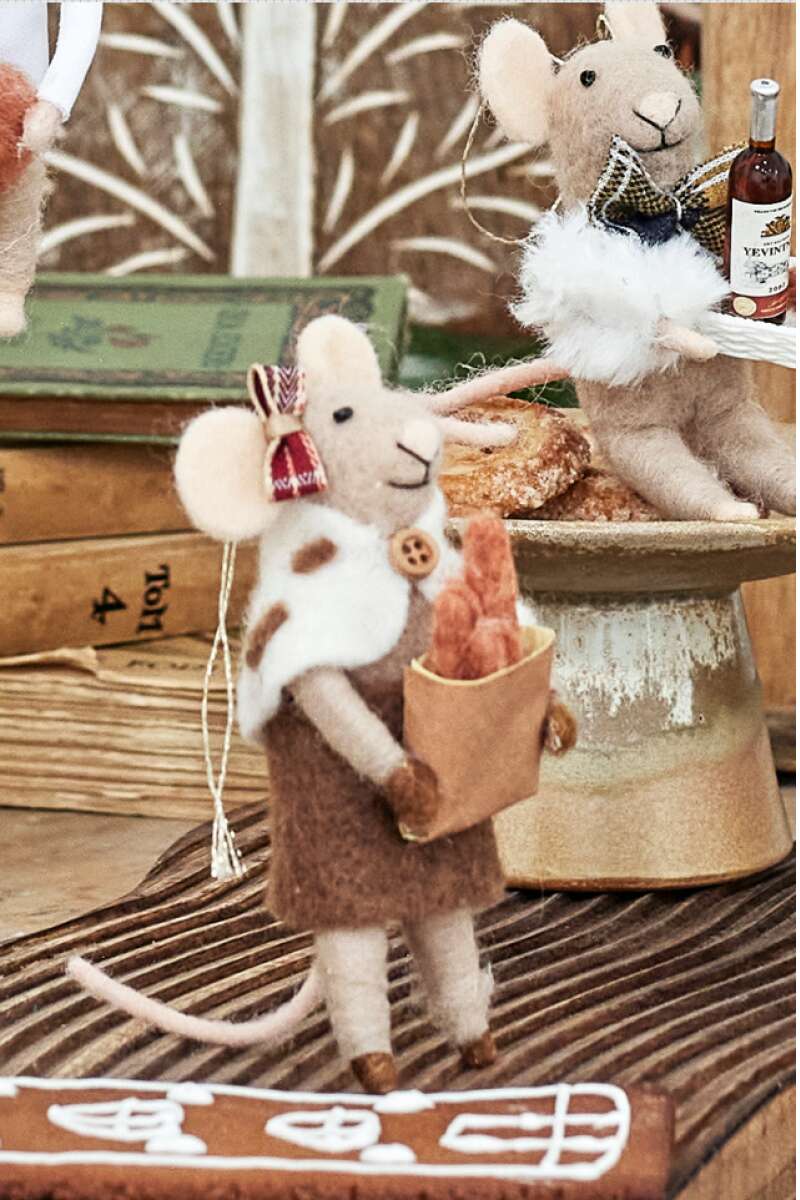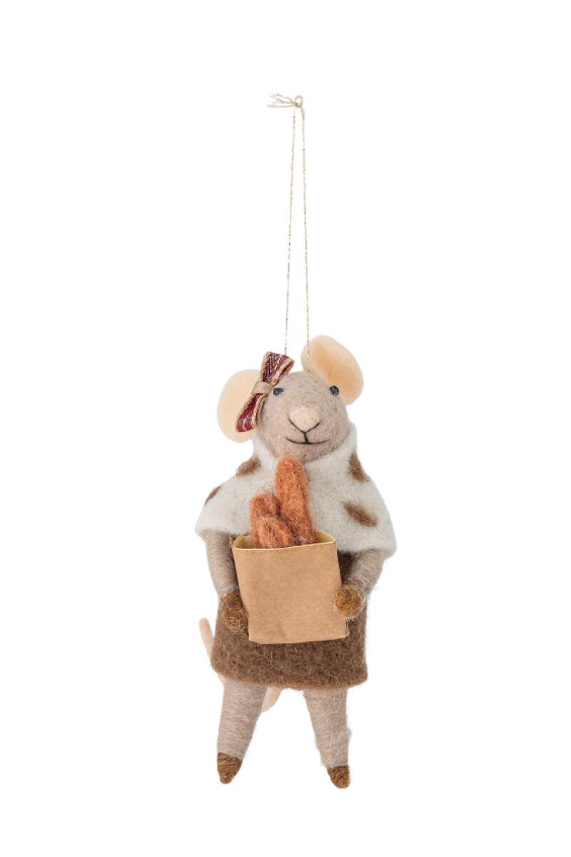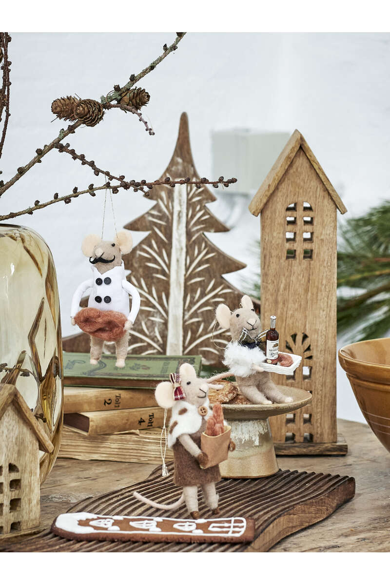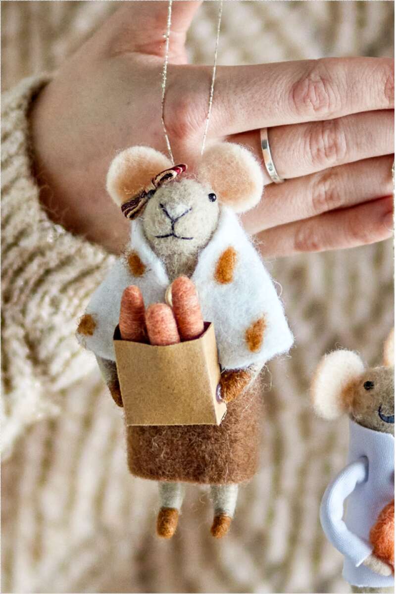 Bezaubernde Maus aus gefilzter Wolle gefertigt und mit entzückenden Details versehen, die ihre Geschichte zum Leben erwecken. Im niedlichen Outfit gekleidet, verleiht diese Maus Ihren Weihnachtsdekorationen eine süße Note. Ausgestattet mit goldenen Aufhängeschnüren, lässt sie sich leicht am Weihnachtsbaum anbringen oder in ein größeres festliches Arrangement integrieren. L6xH12xW7 cm.