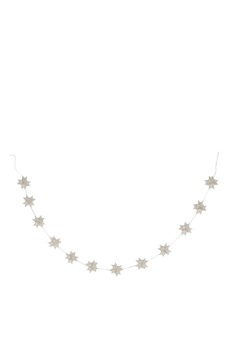 Artikelnummer: 54287Handgemachte Girlande mit 12 Sternen (ø4.5cm) aus Papier an Baumwollschnur, 160cm lang.