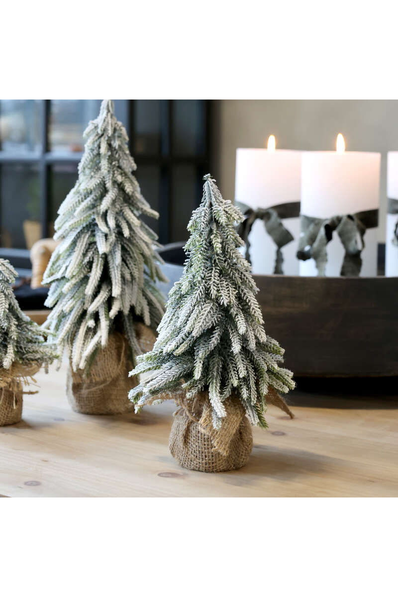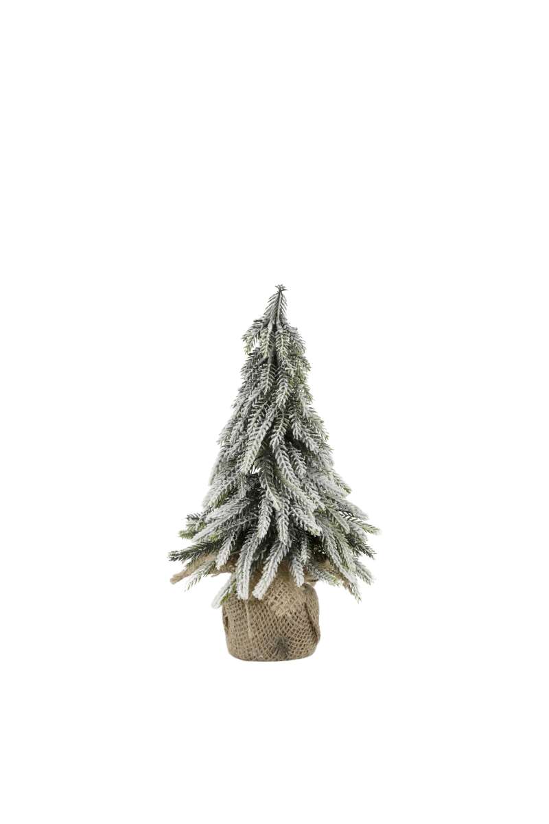 Artikelnummer: 54324Künstlicher Tannenbaum, beschneit, mit Jutefuss, H27cm