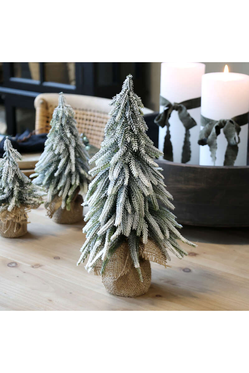 Artikelnummer: 54325Künstlicher Tannenbaum, beschneit, mit Jutefuss, H35cm