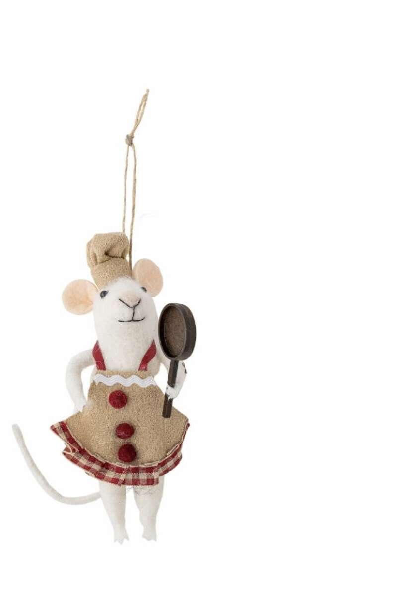 Charmantes Mäuschen, gefilzt aus Wolle und mit süssen Details verziert. Ihr spielerisches Outfit trägt zu einer gemütlichen Atmosphäre in Ihrer Weihnachtsdekoration bei. Ausgestattet mit einer Aufhängeschnur, lässt sie sich leicht am Weihnachtsbaum platzieren oder als Teil einer größeren Dekoration, wo sie eine lustige Dimension hinzufügt. L10xH13xW5 cm.