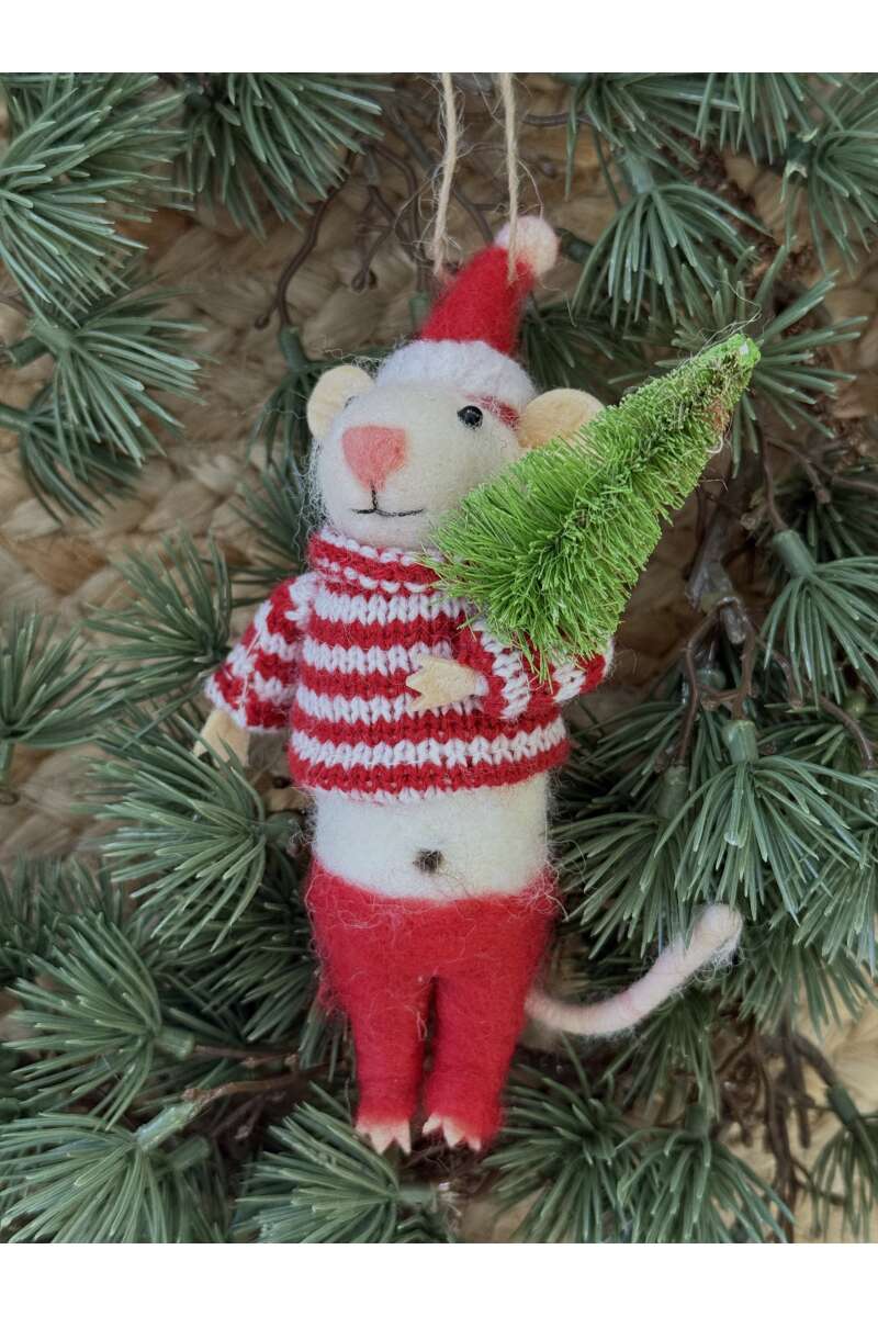 Artikelnummer: 54345Charmantes Mäuschen, gefilzt aus Wolle und mit süssen Details verziert. Ihr spielerisches Outfit tragen zu einer gemütlichen Atmosphäre in Ihrer Weihnachtsdekoration bei. Ausgestattet mit einer Aufhängeschnur, lässt sie sich leicht am Weihnachtsbaum platzieren oder als Teil einer größeren Dekoration, wo sie eine lustige Dimension hinzufügt. L8xH13xW6 cm.