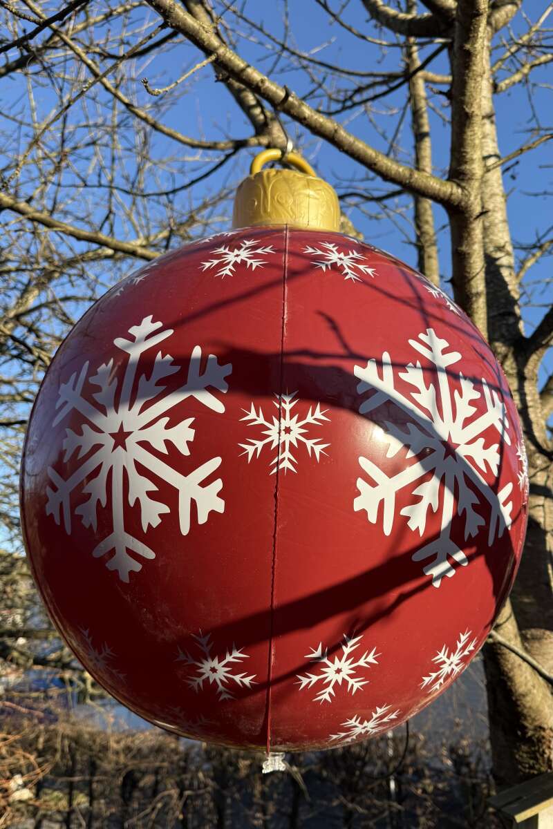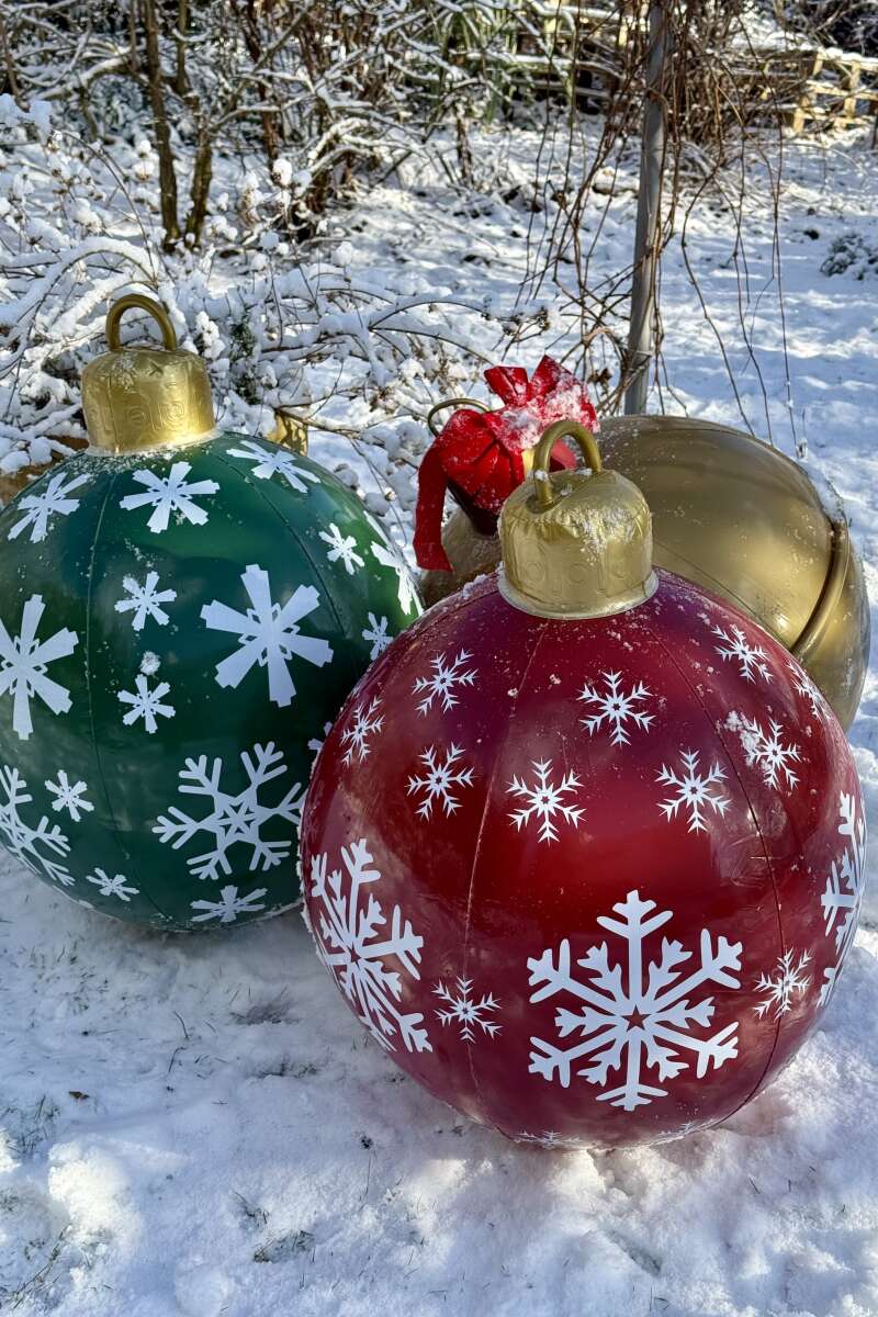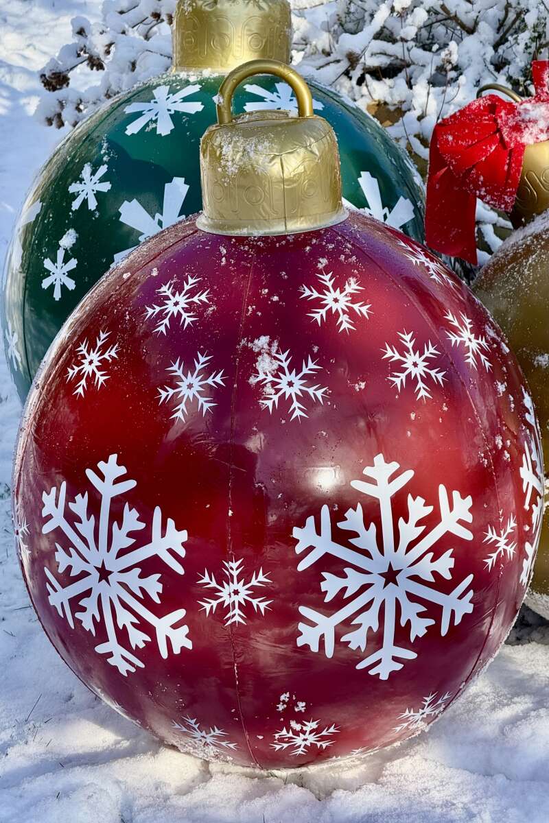 Lustiges Dekoteil für Garten oder Terasse, übergrosse Weihnachtskugel, 80x60cm, aus Kunsstoff, zum Aufblasen.