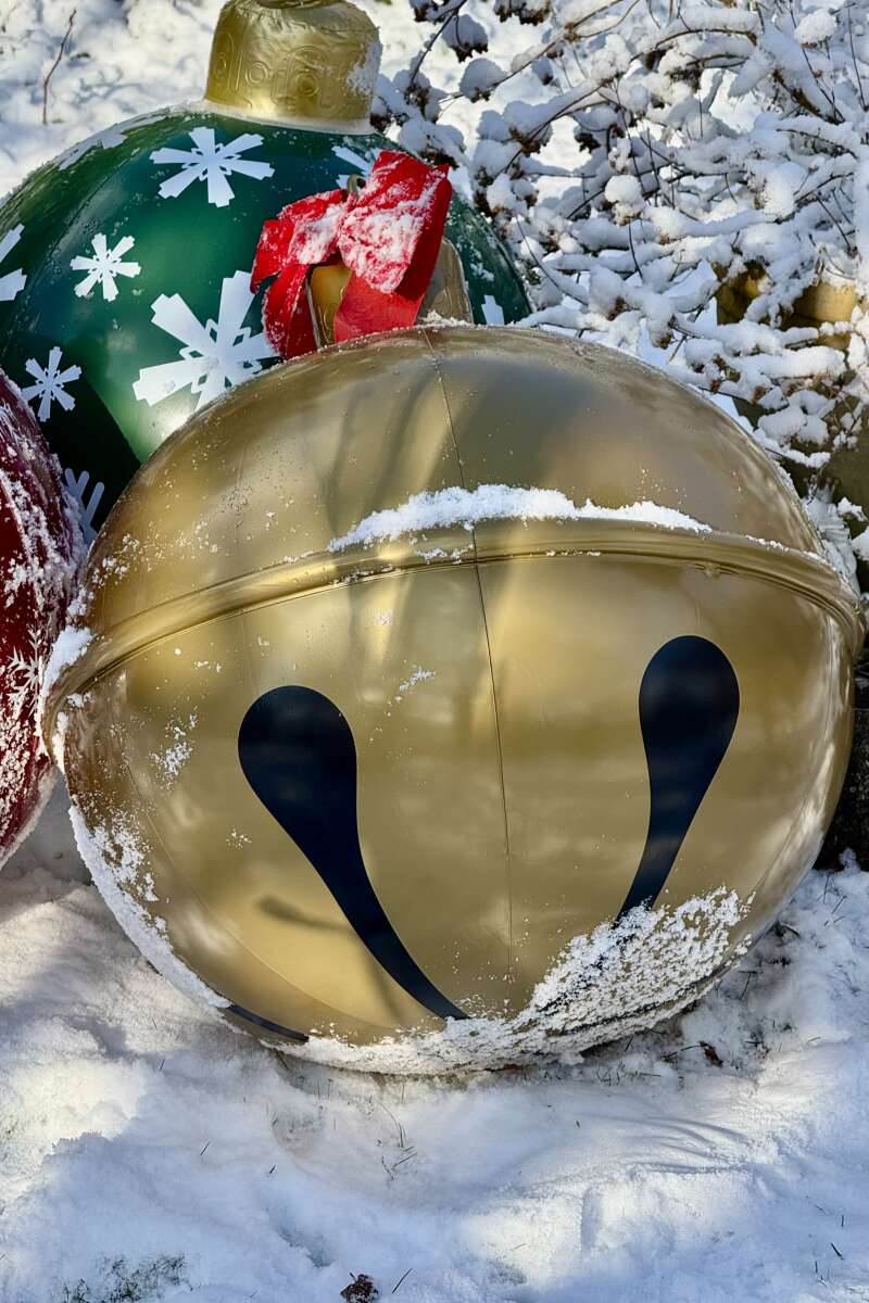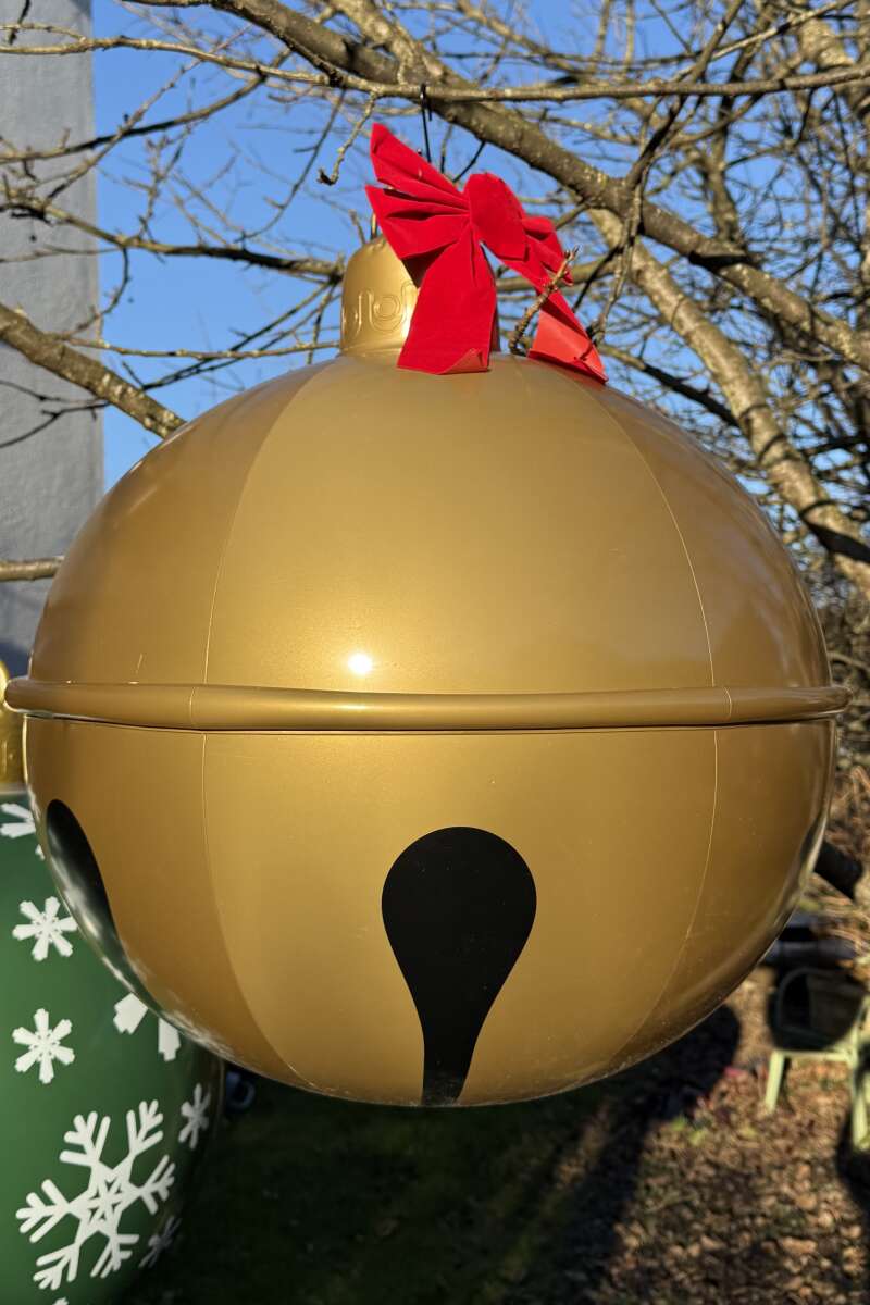 Lustiges Dekoteil für Garten oder Terasse, übergrosse Weihnachtsglocke, 80x60cm, aus Kunsstoff, zum Aufblasen.