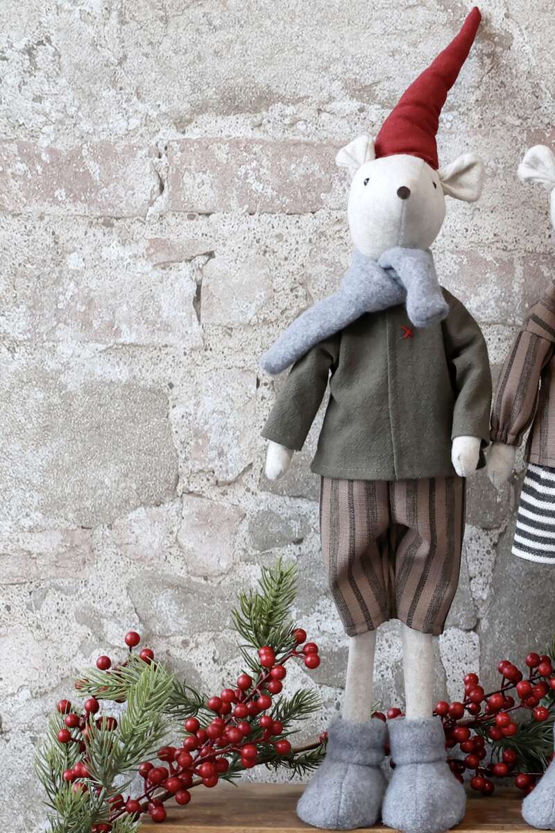 Artikelnummer: 54715Süsser Weihnachtsmäuserich, aus Leinen, Baumwolle, Polyester, Bambus, Filz, Eisen, PVC.