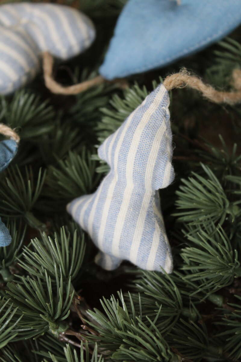 Tannenbaum aus Baumwollstoff mit Juteaufhängung,B: 6,5 H: 8.5 T: 2cm, einfache Verarbeitung.