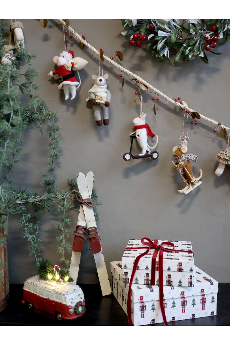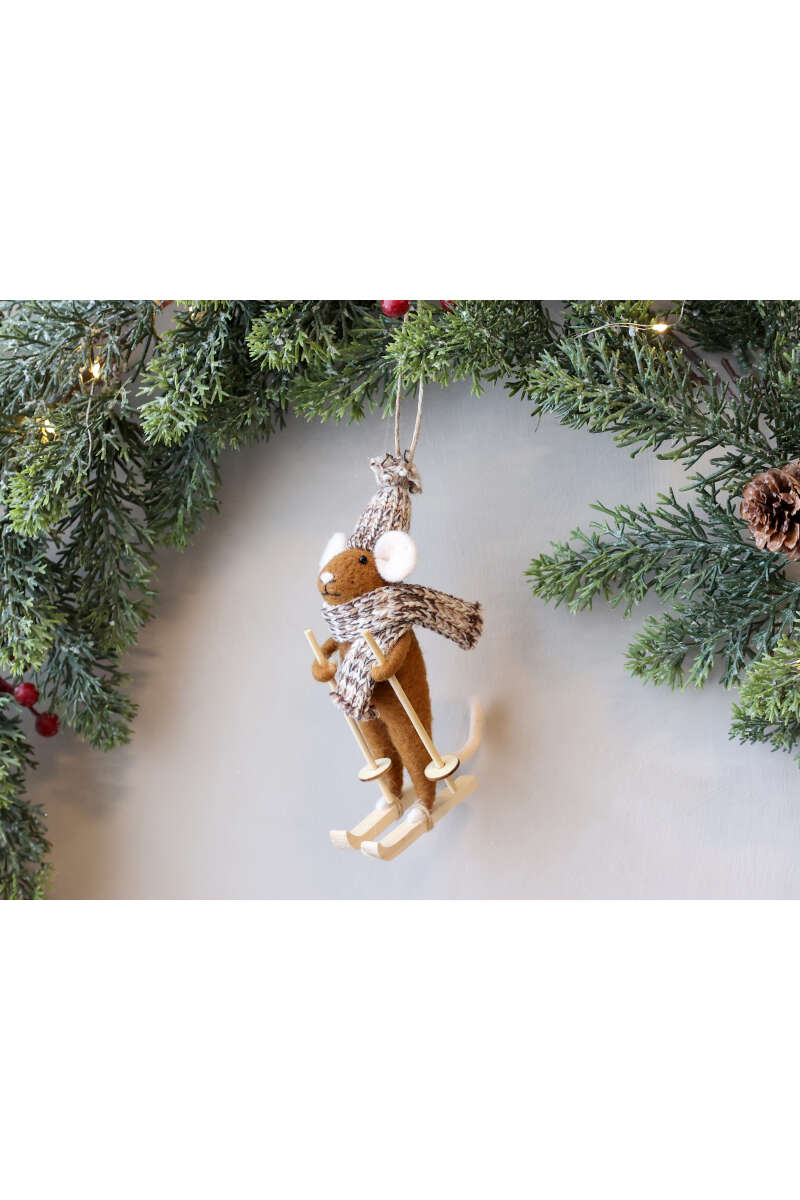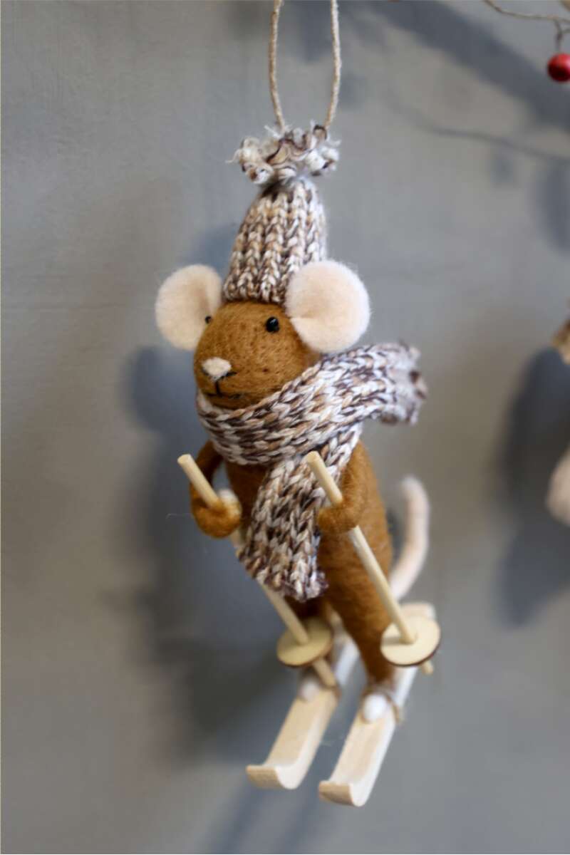 Maus auf Ski aus Filz zum Aufhängen, H14/L8/B7 cm.