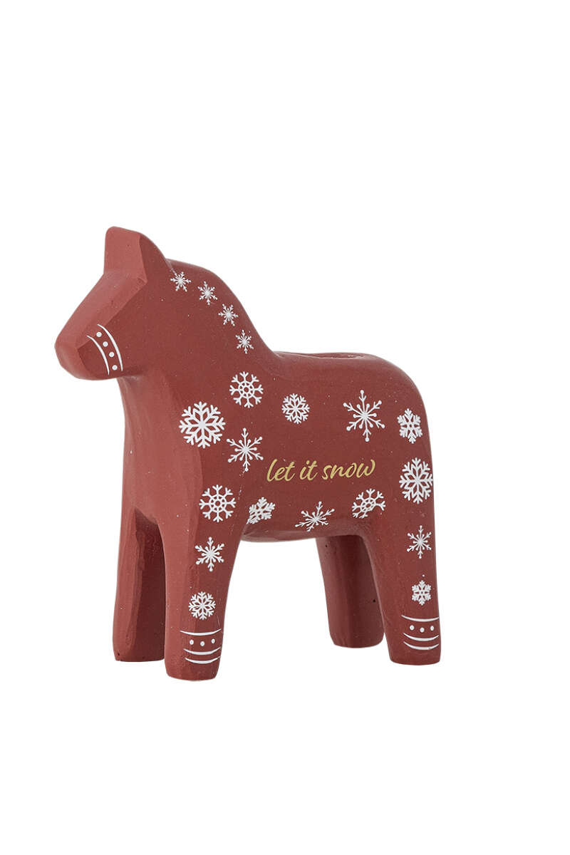 Dekorativer Kerzenhalter für dünne Kerzen (ca. 1.2cm) , das Rössli ist aus Polyresin, teils handbemalt, L9,5xH10xW4,5 cm.