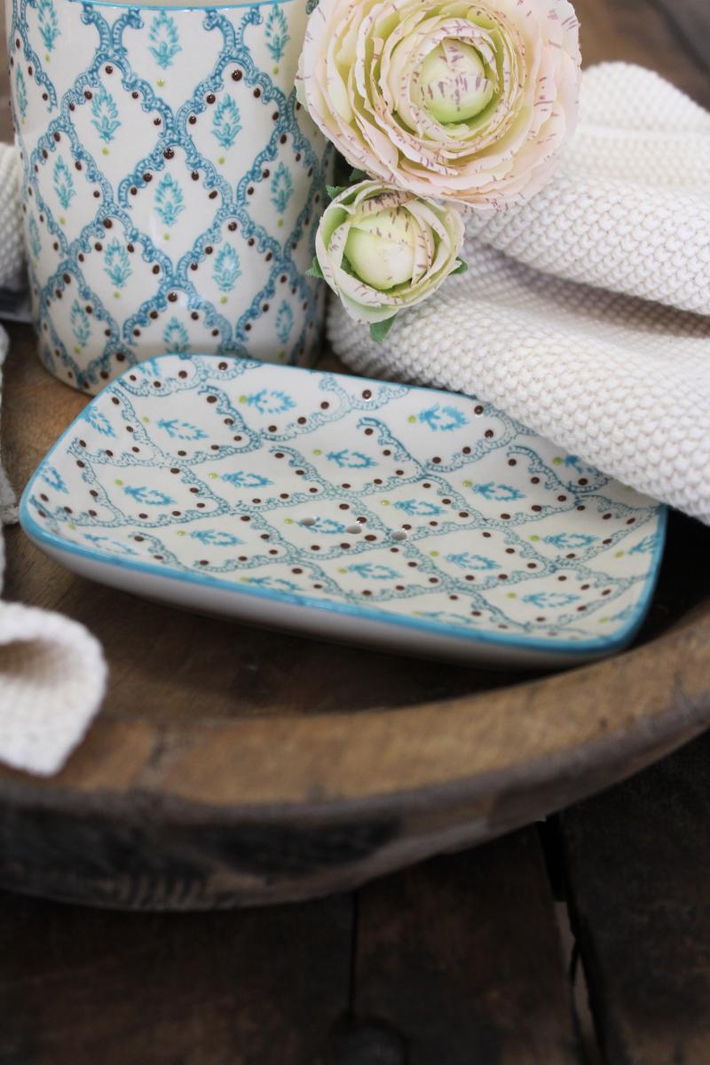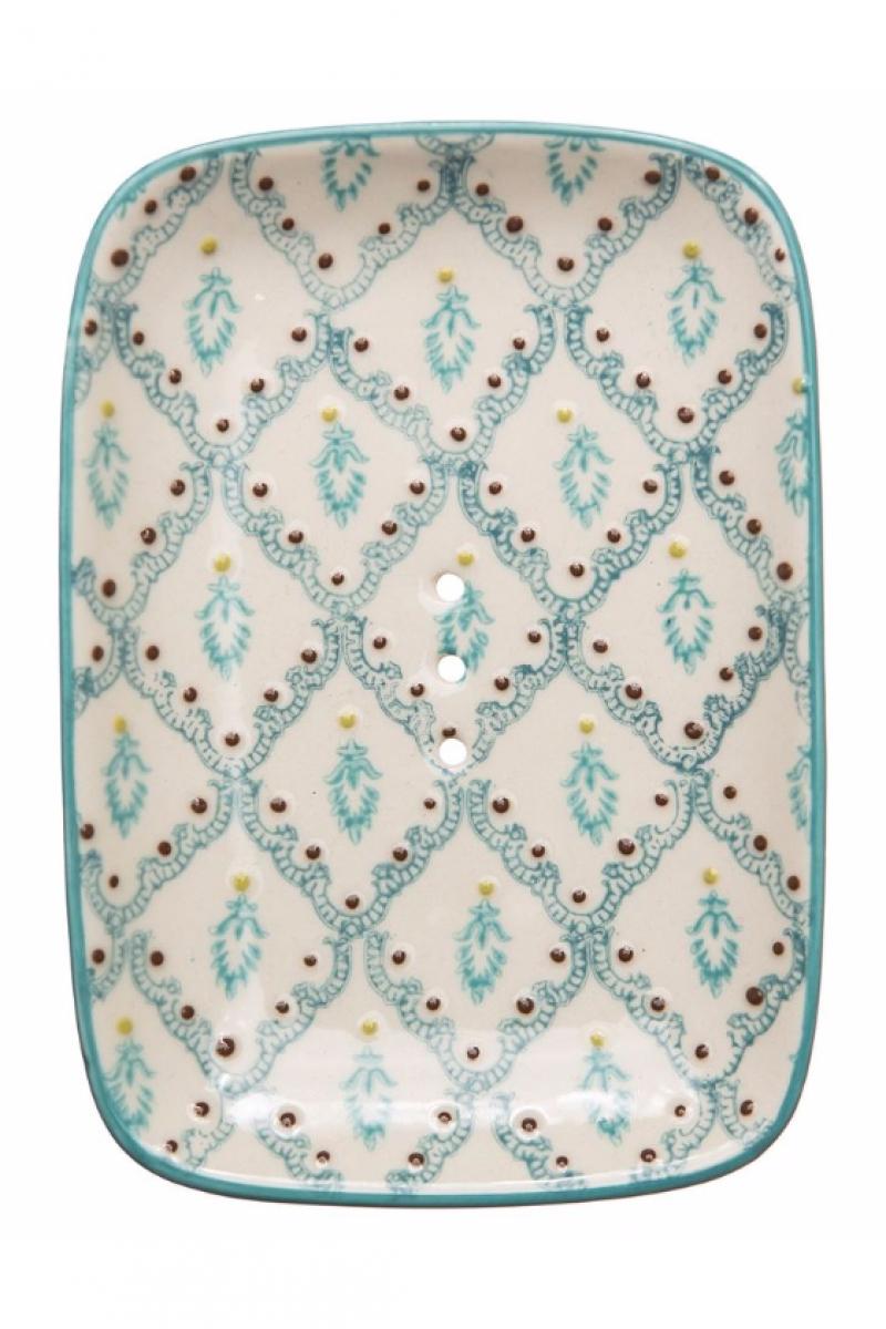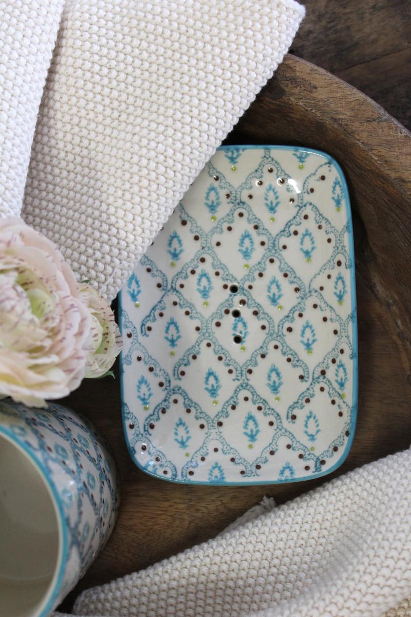 Artikelnummer: 48576Seifenschale aus Keramik, handbedruckt, von Tranquillo