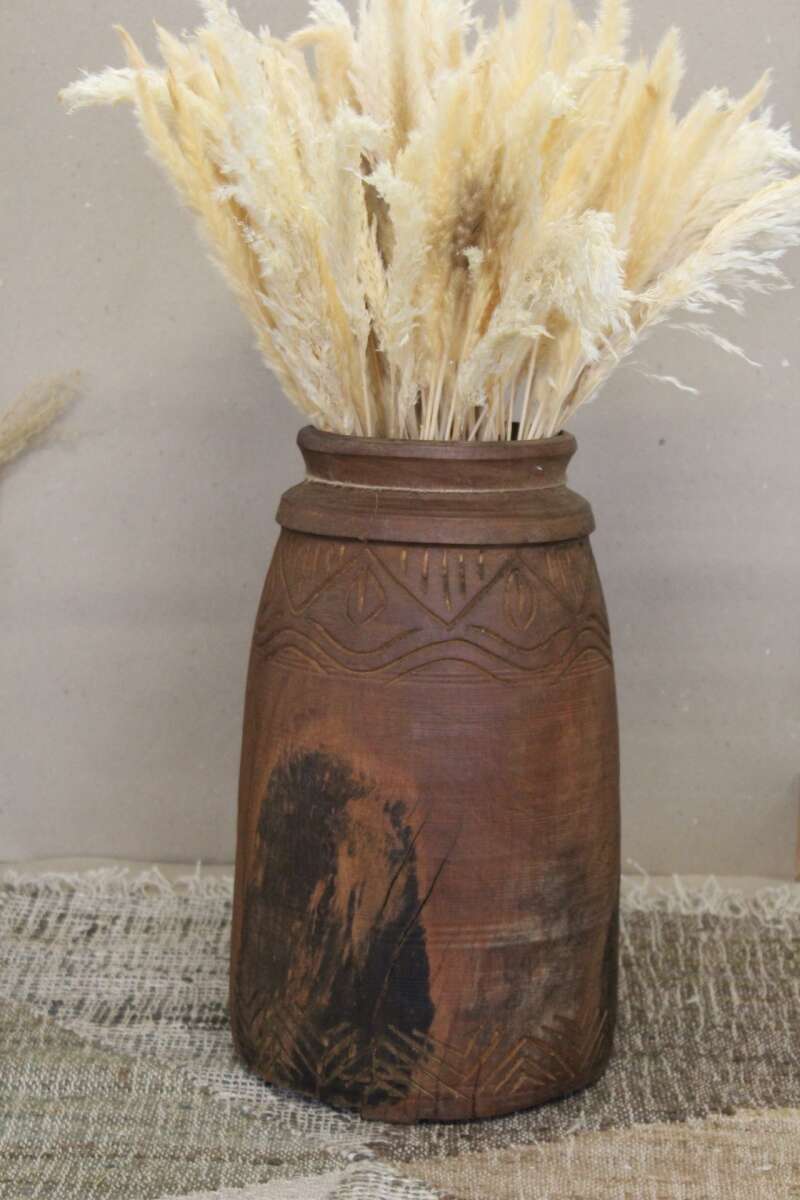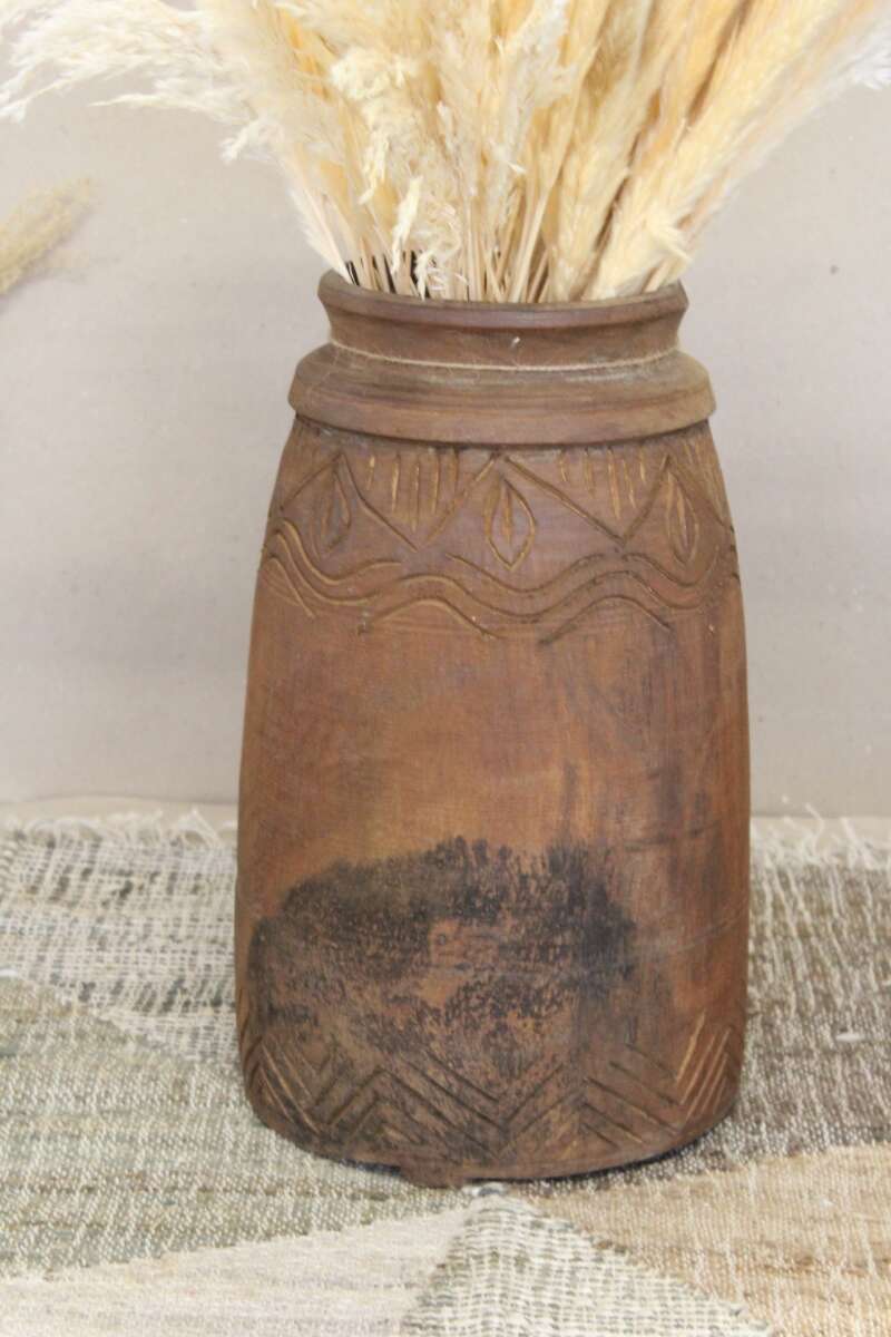 Artikelnummer: 54405Wunderbare schwere Vase aus Altholz, Höhe 48cmx ø35, mit Schnitzereien, hat auch mal Risse und Fehler im Holz, was ihr eine Einzigartigkeit und Charme verleiht, nicht wasserdicht.