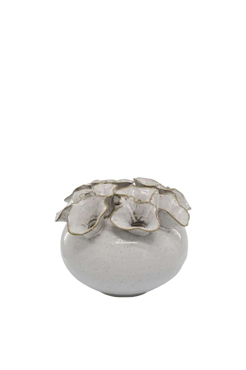 Artikelnummer: 54469Wunderbare Vase aus Keramik, mit 12 Öffnungen für Blumen, H15/D21 cm in Antique Creme .