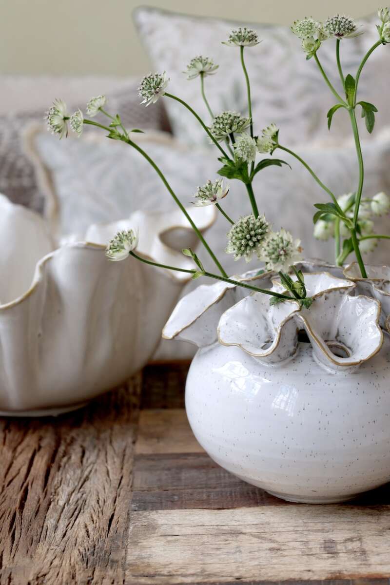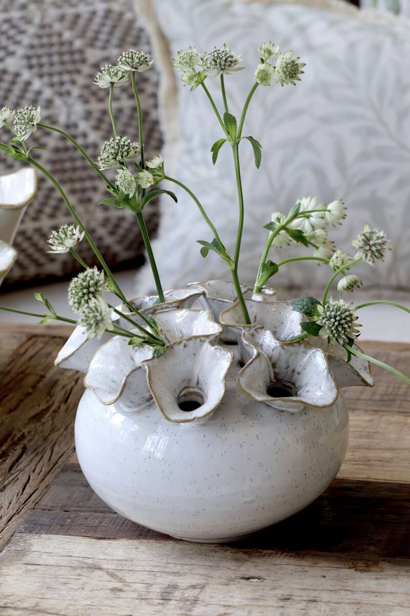 Wunderbare Vase aus Keramik, mit 12 Öffnungen für Blumen, H15/D21 cm in Antique Creme .