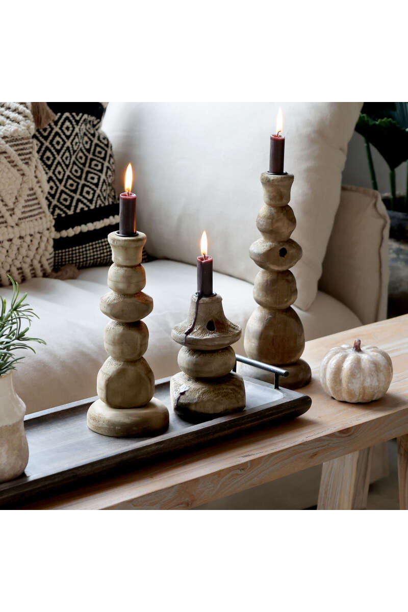Kerzenständer aus Kiefernholz, für Stabkerzen, H16/D12 cm natur