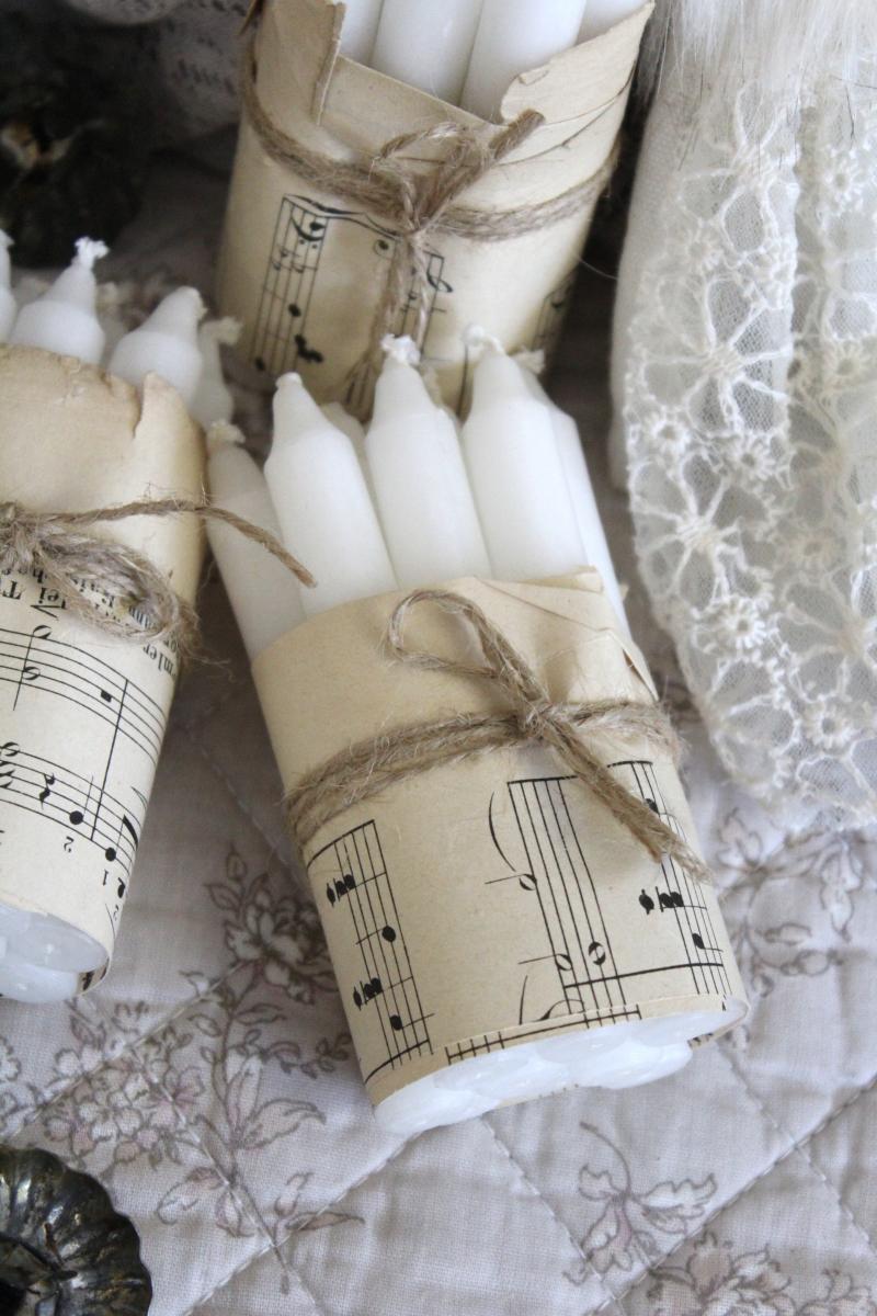 Artikelnummer: 5091810 Baumkerzen als Bündel in alte Notenblätter eingepackt, aus der Werkstatt von wedernoch.ch