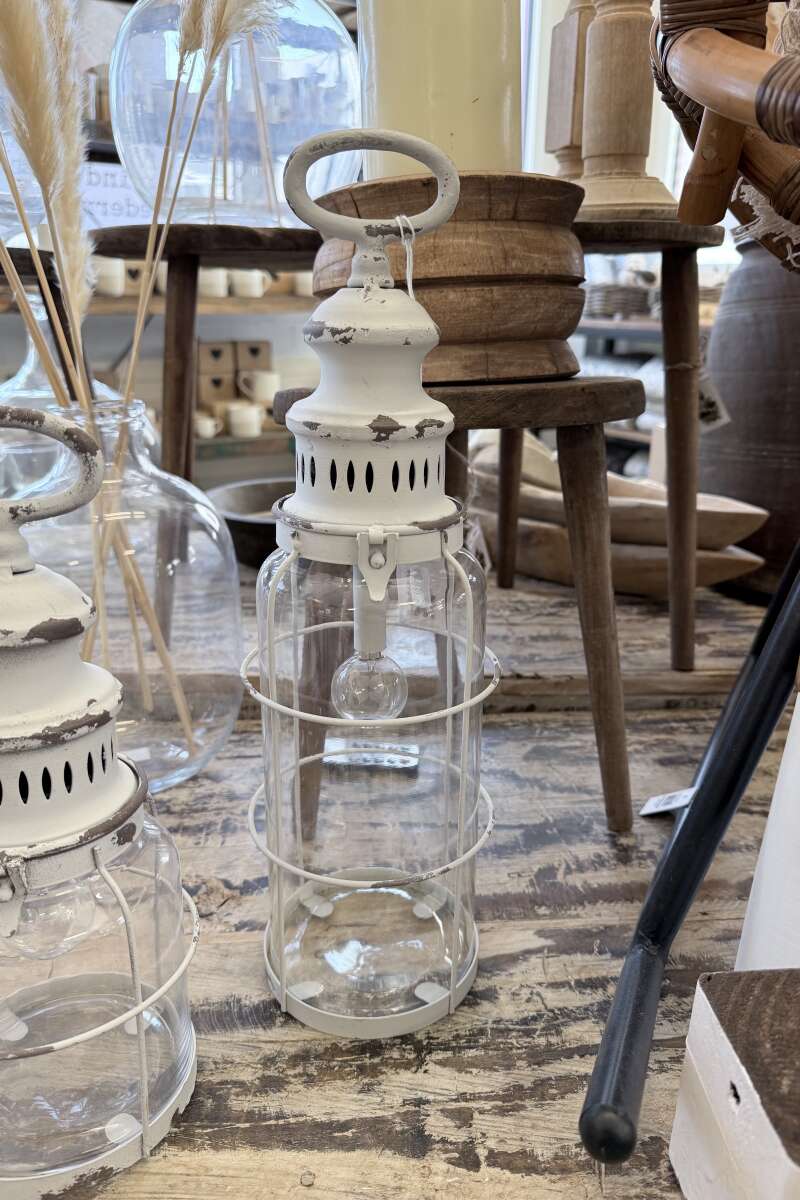 Stalllaterne Shabby Weiss H42cm