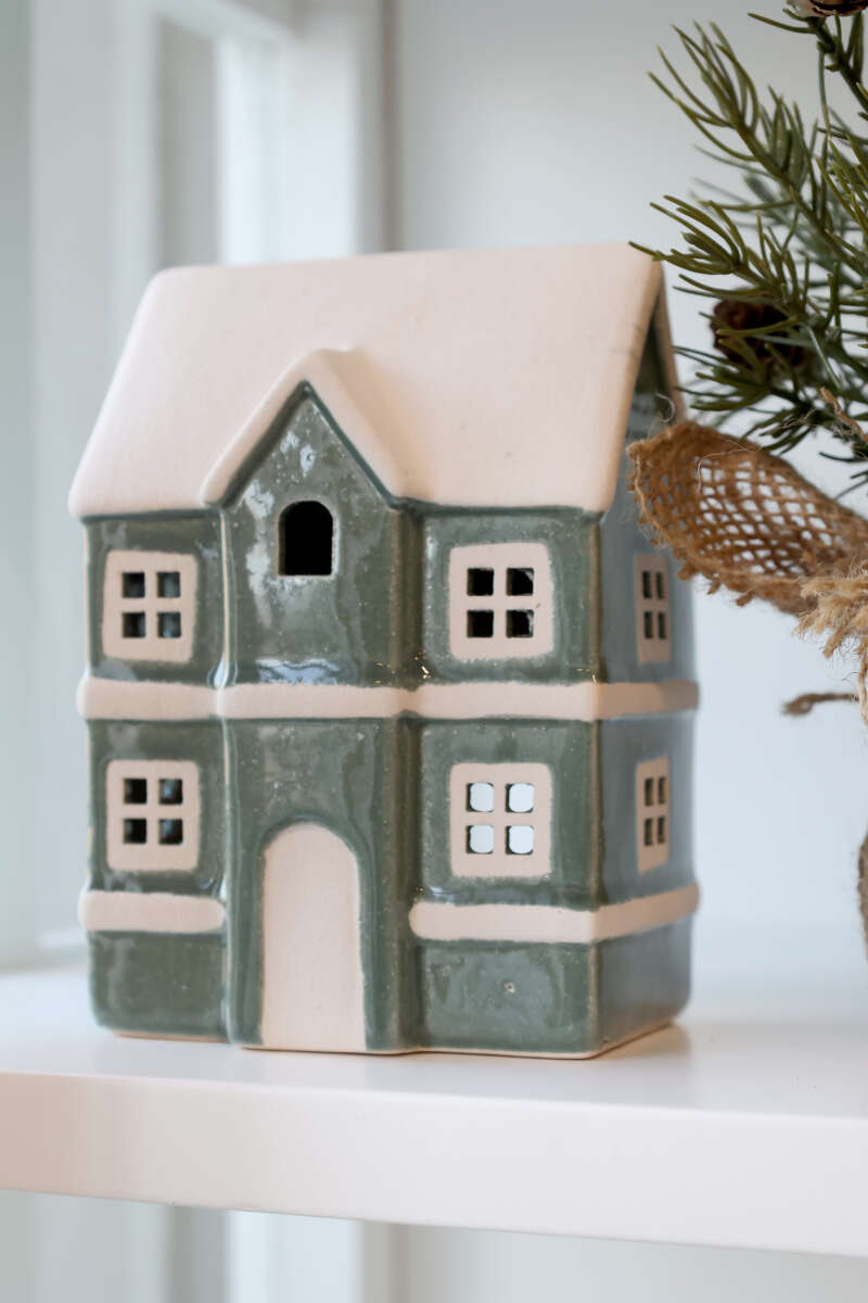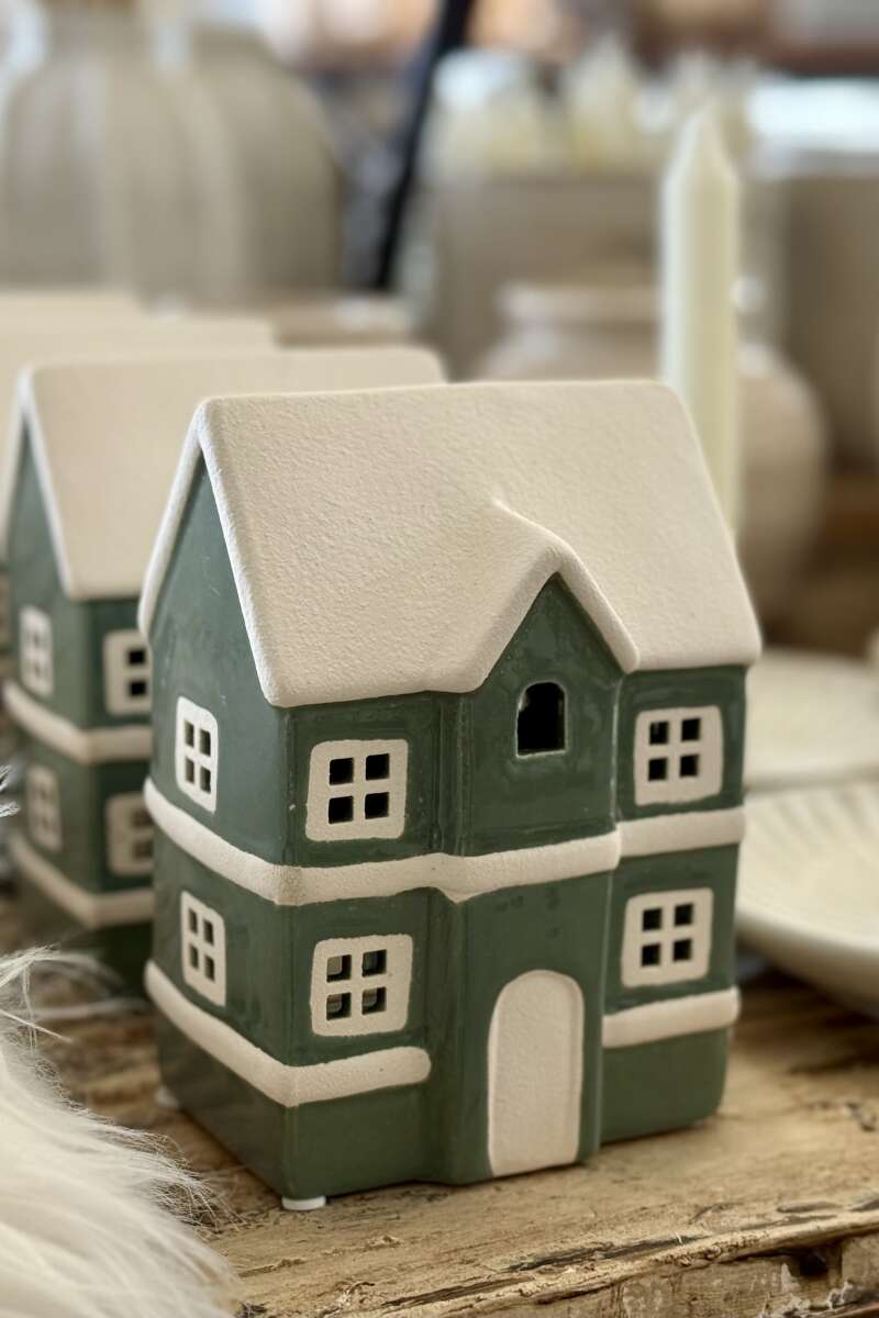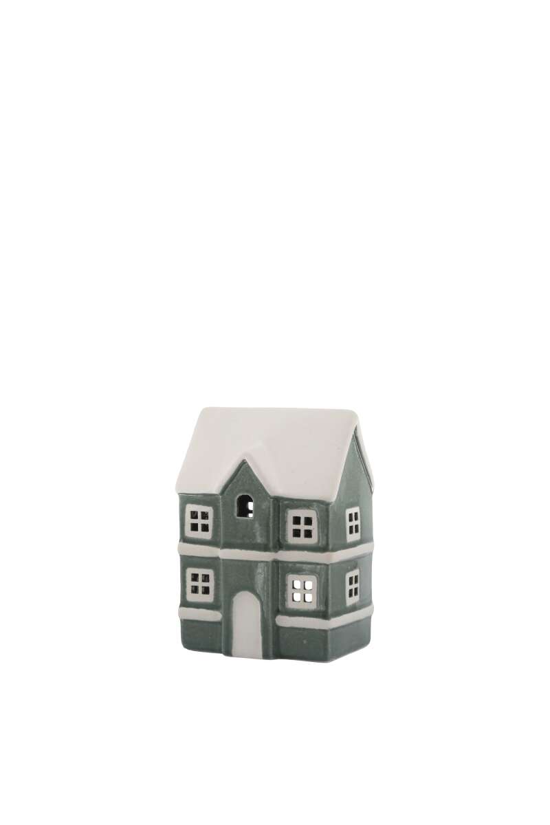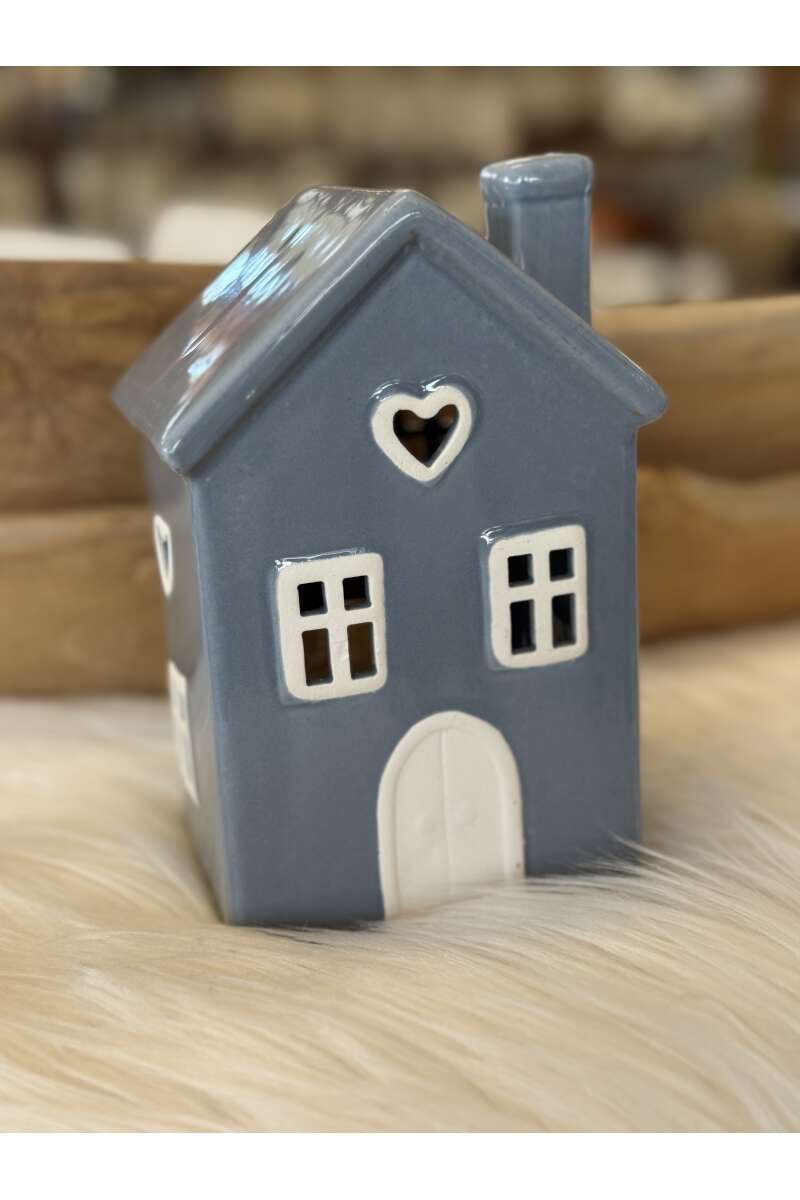 Teelicht in Hausform, aus Keramik, H14,5/L10/B8 cm.