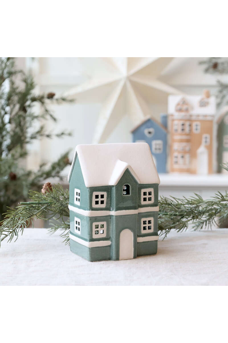 Keramikhaus My Home Town Graublau, rostfarbige Tür