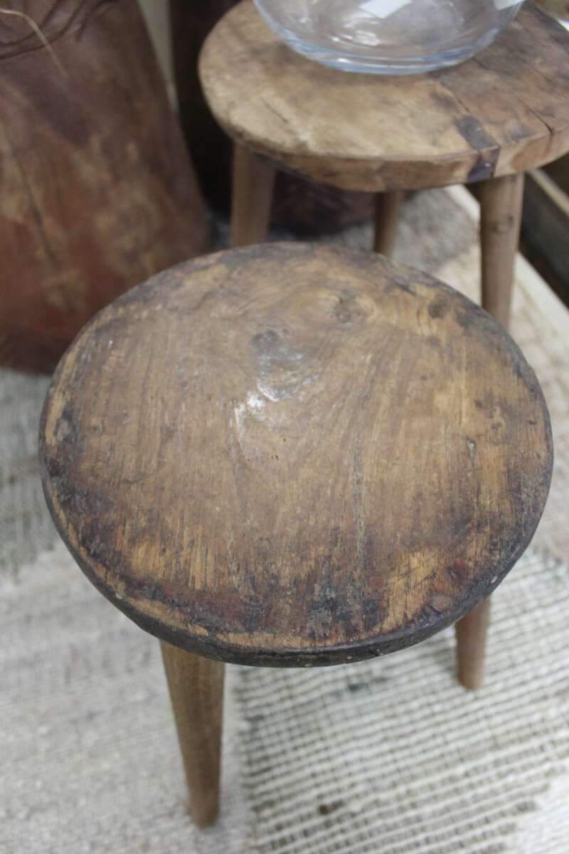 Artikelnummer: 54399Wunderbares Hockerli aus Altholz, mit dekorativen *Flickstellen*, Höhe 30cm, ø25cm.