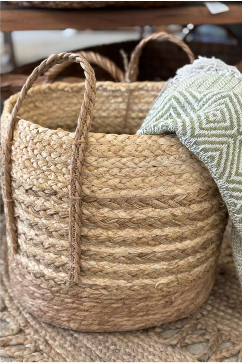 Korb aus Mais, getrocknetem Gras, Rohrkolben, H32/D33 cm.