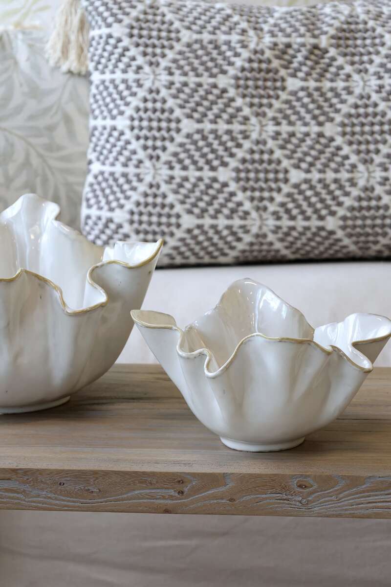 Schale aus Keramik, H12/D22 cm, in Antique Creme.