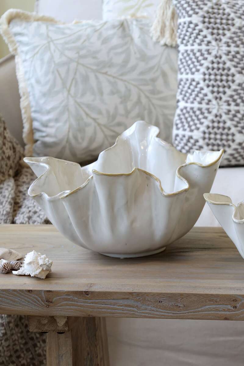 Schale aus Keramik, H16/D32 cm, in Antique Creme.