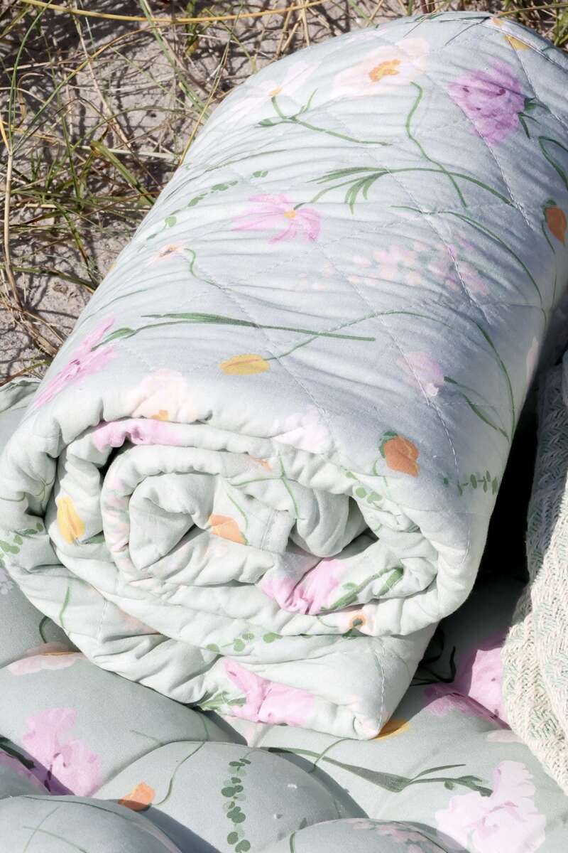 Steppdecke Grün mit Blumen 130x180cm