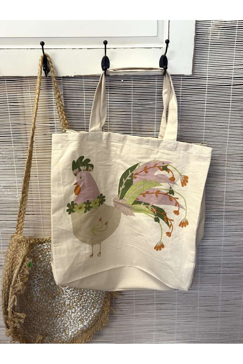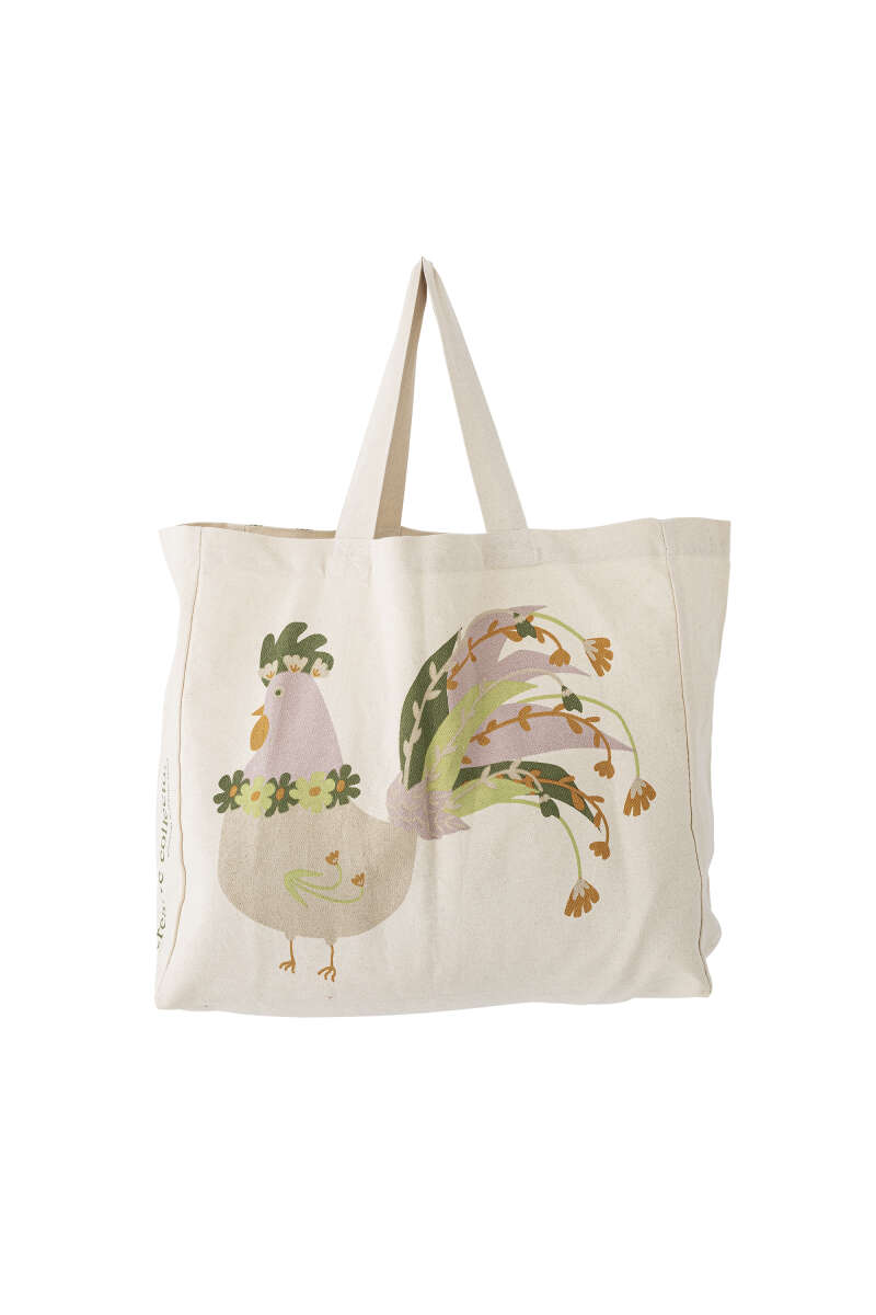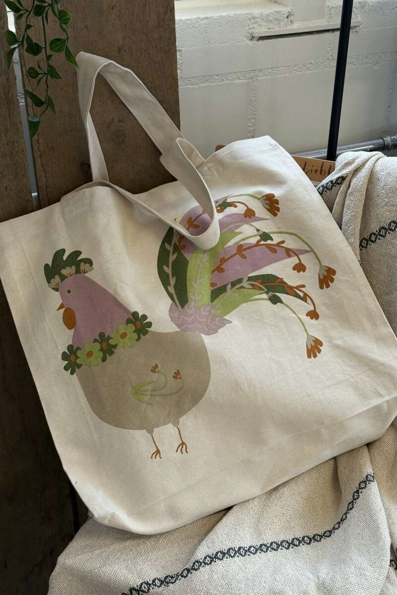 Die Joshua Tragetasche von Creative Collection ist eine charmante und praktische Tasche aus Baumwolle. Eine Seite der Tasche ist mit einem lustigen und farbenfrohen Druck einer Henne verziert, während die Rückseite ein Muster mit feinen Federn zeigt. Perfekt für den täglichen Gebrauch, egal ob beim Einkaufen, auf einem Ausflug oder wenn Sie einfach eine stilvolle Tasche für Ihre täglichen Besorgungen suchen. L47xH40xW16 cm